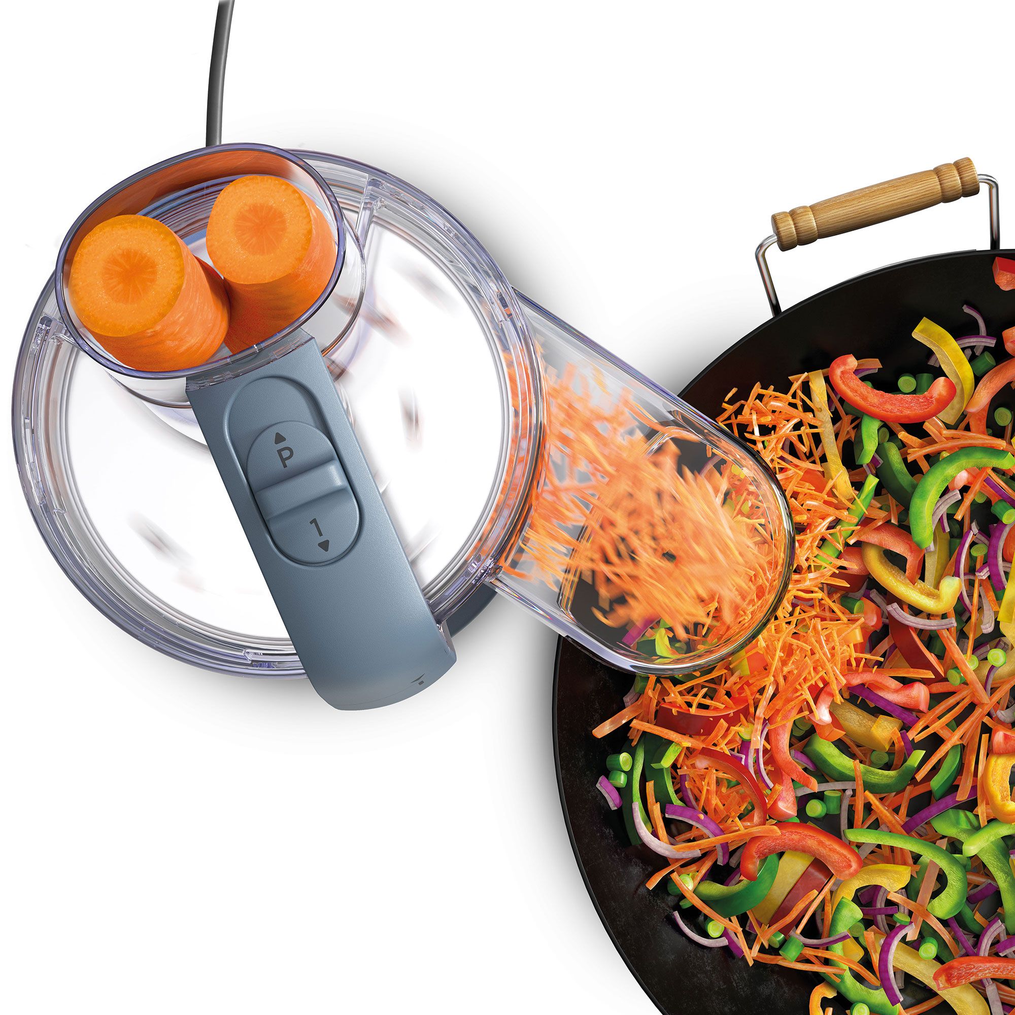 • il pratico accessorio 360° Express Serve™ ti permette di affettare e grattugiare direttamente nel piatto o nella padella, da qualsiasi direzione