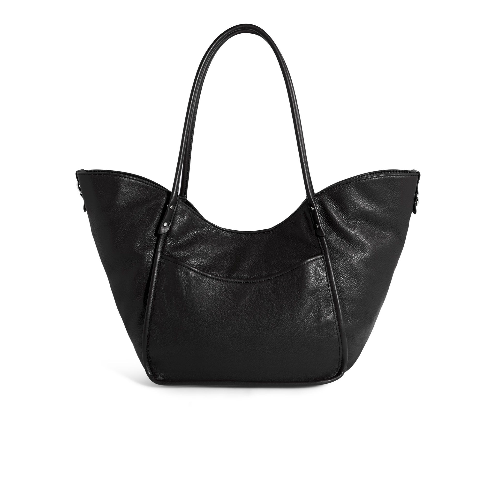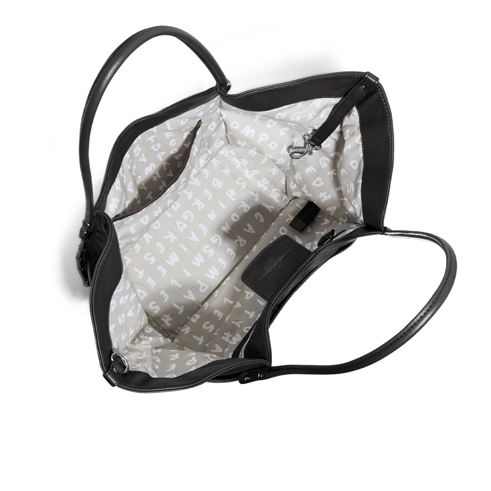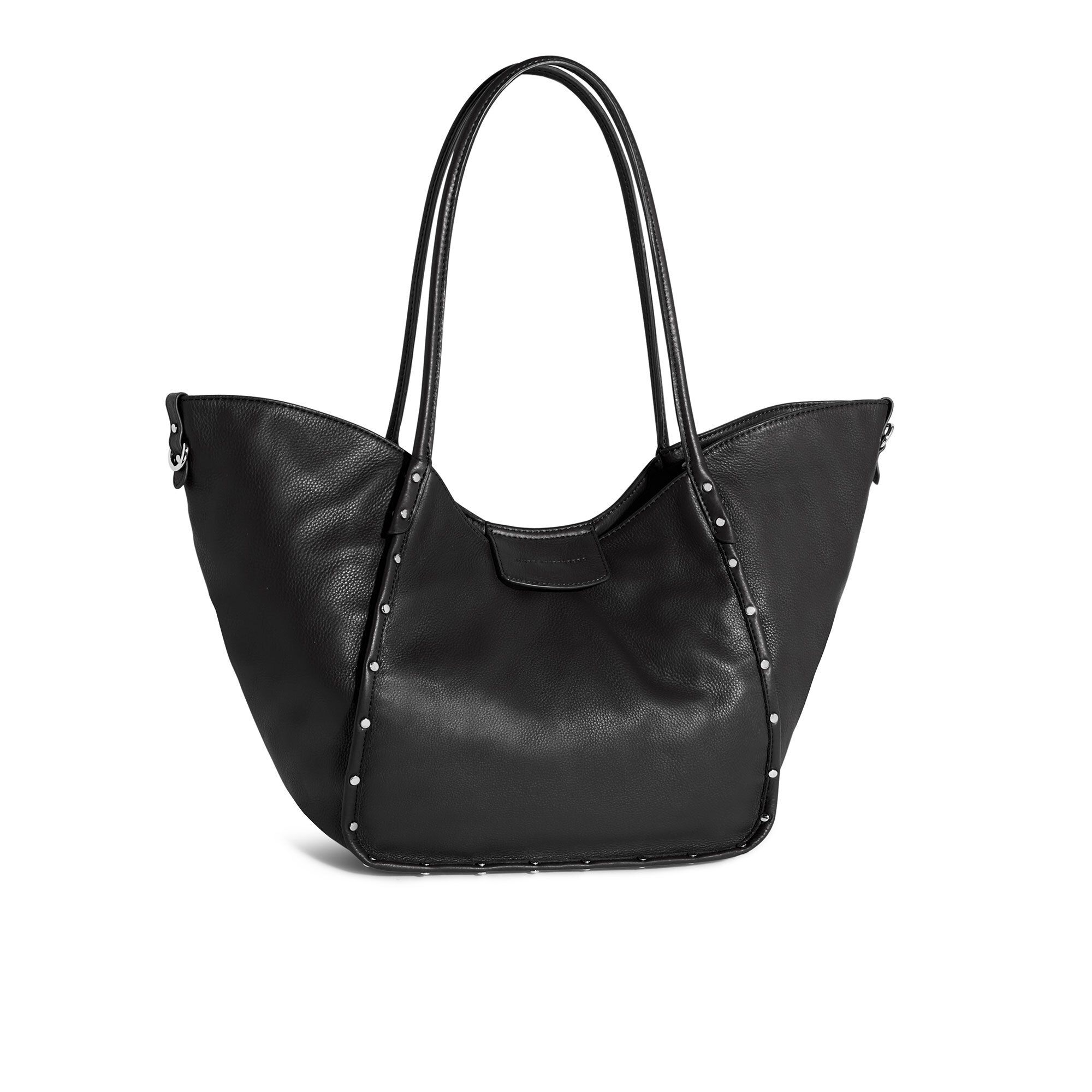 • borsa a spalla in pelle bicolore (variante bianco/nero) e in tinta unita (variante nera)
