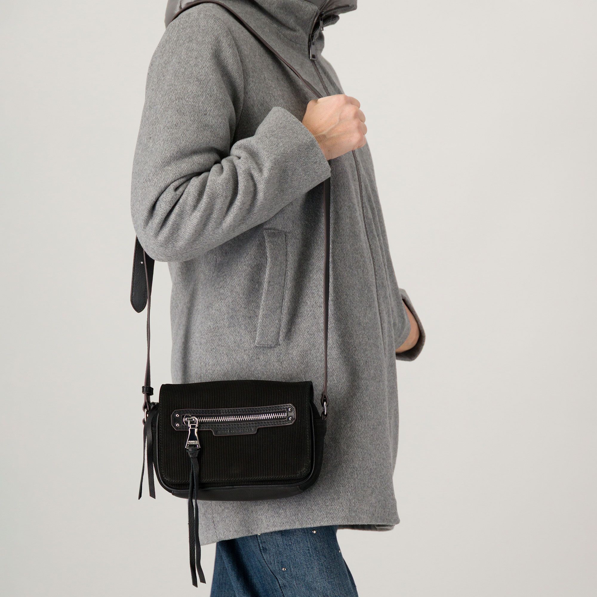 • borsa a tracolla in pelle scamosciata effetto rigato