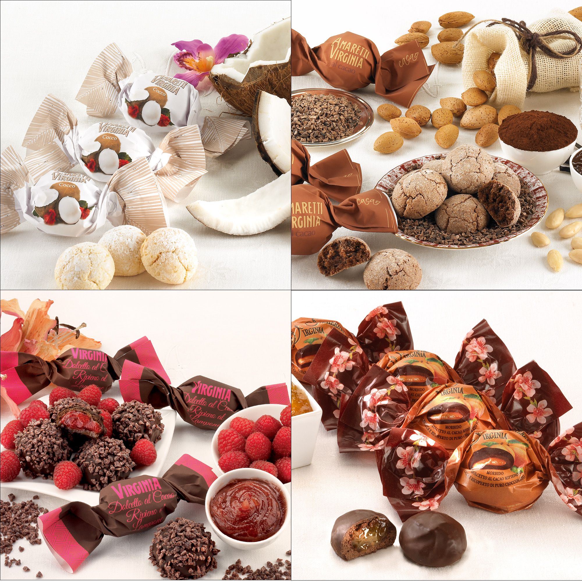 • sacchetto di amaretti al cacao e cocco assortiti (340 g): amaretti arricchiti con pasta di cacao e fave di cacao croccanti o pasta di cocco per un gusto unico