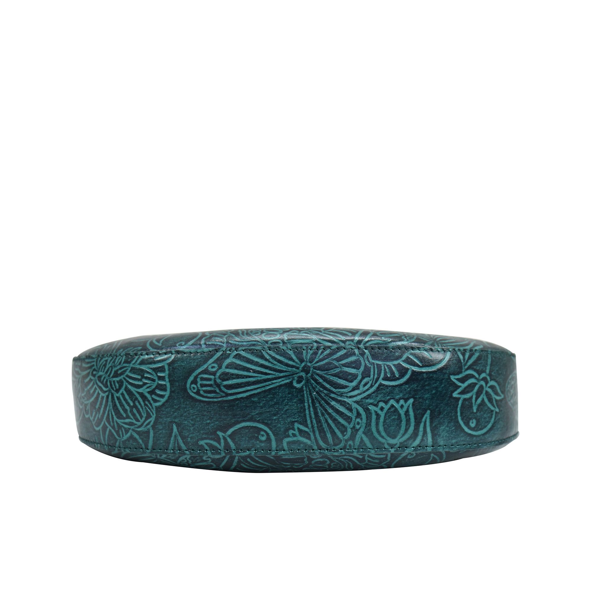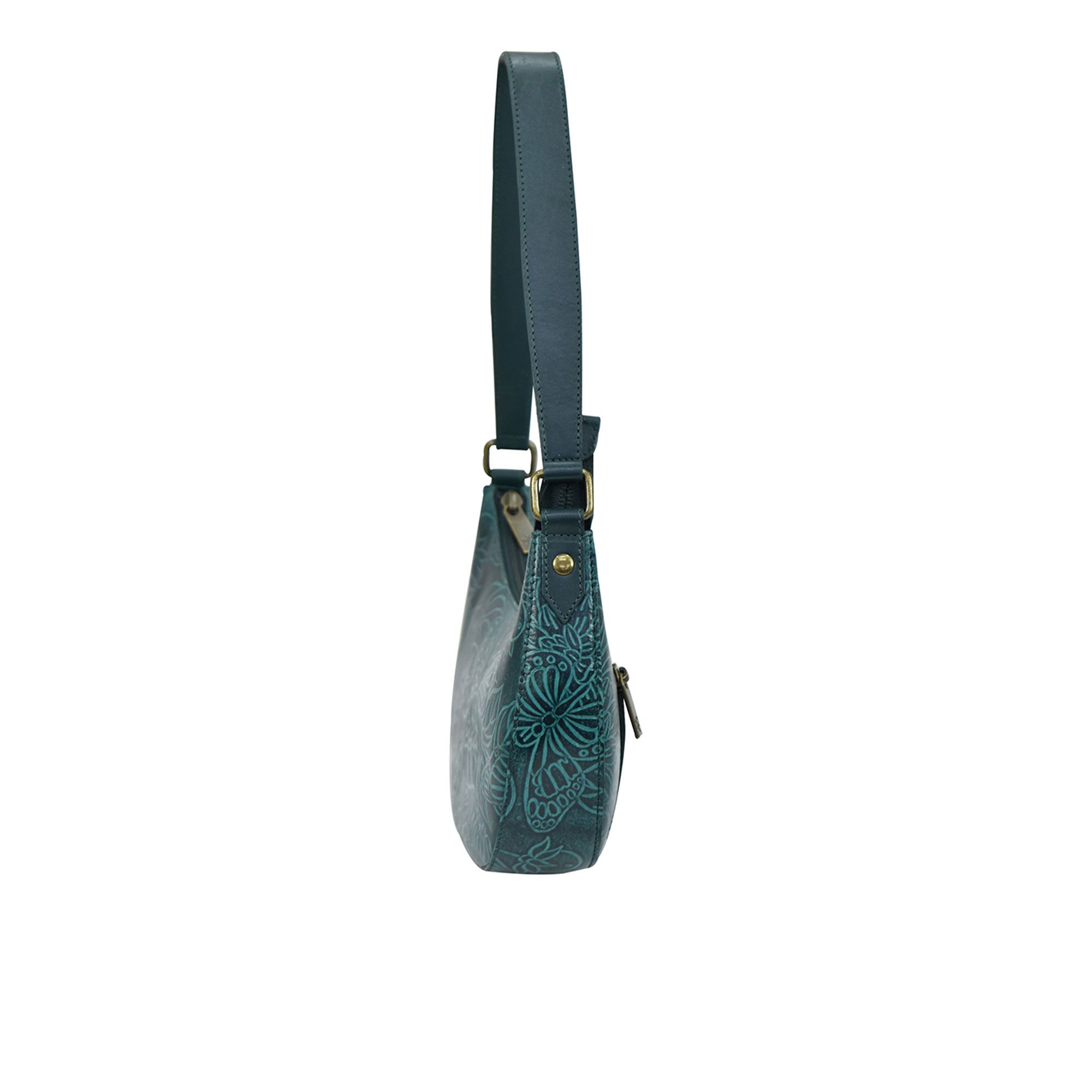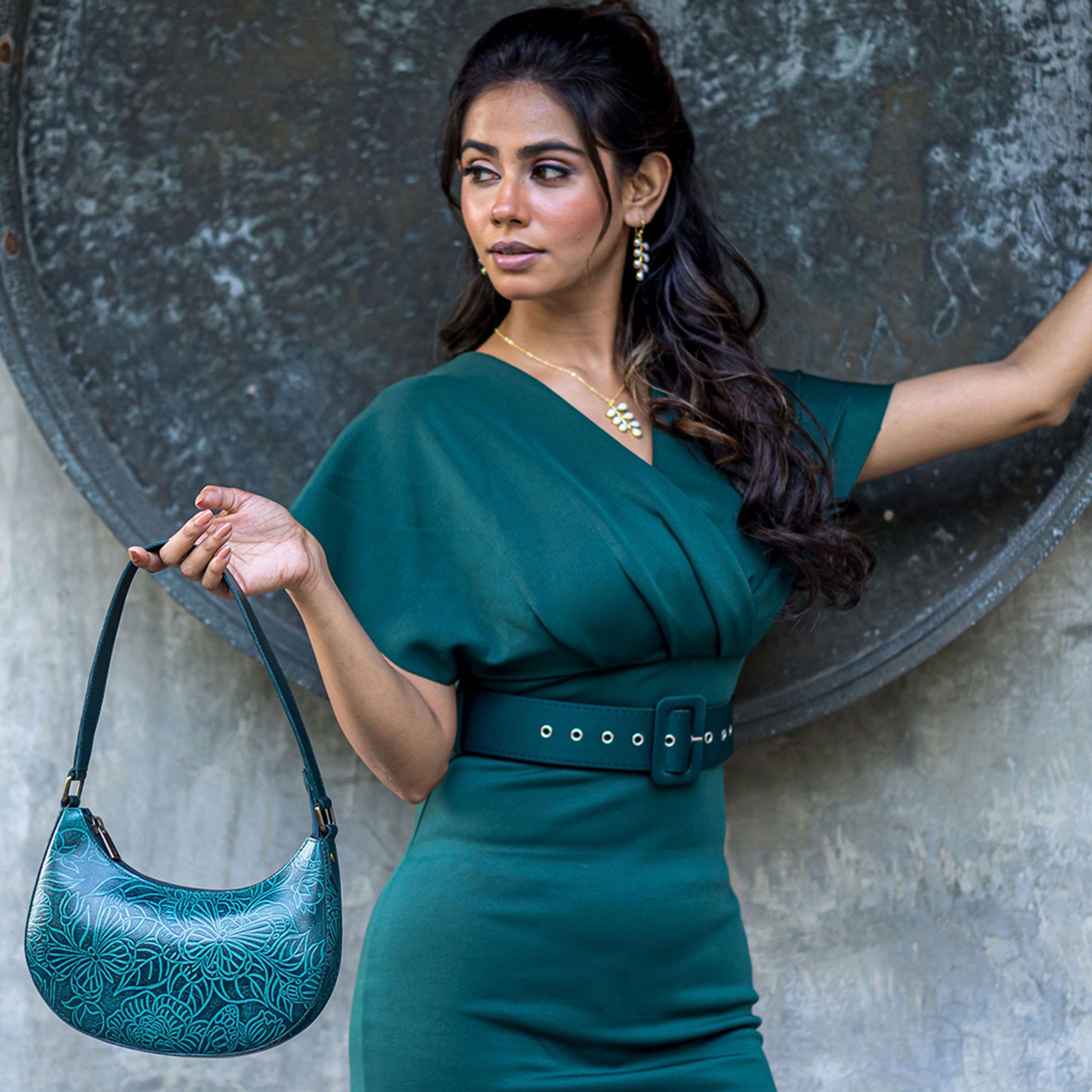 • borsa artigianale a spalla in pelle con design a mezzaluna