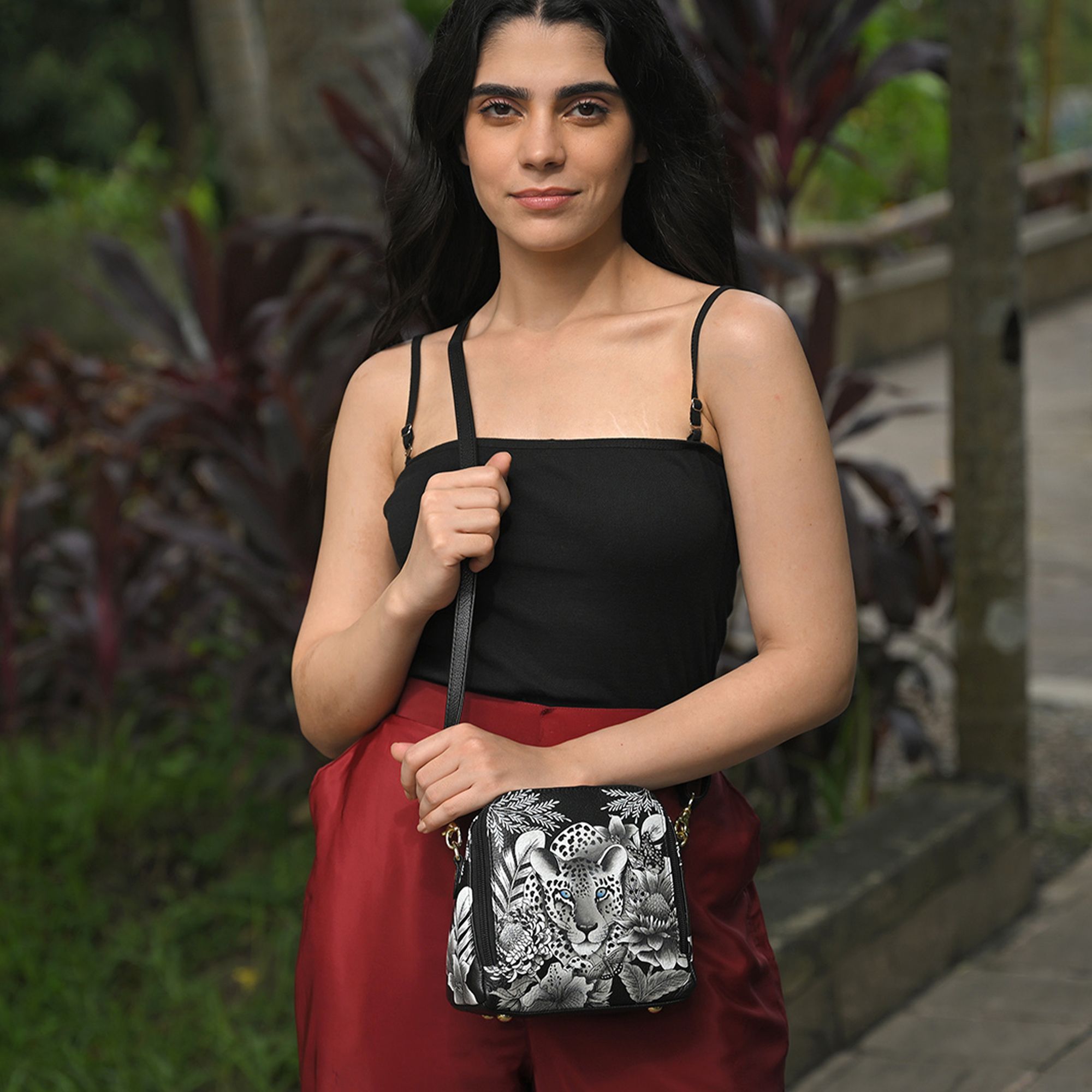 I dettagli dipinti a mano donano carattere e originalità, mentre la praticità degli scomparti ti accompagna con stile in ogni occasione.