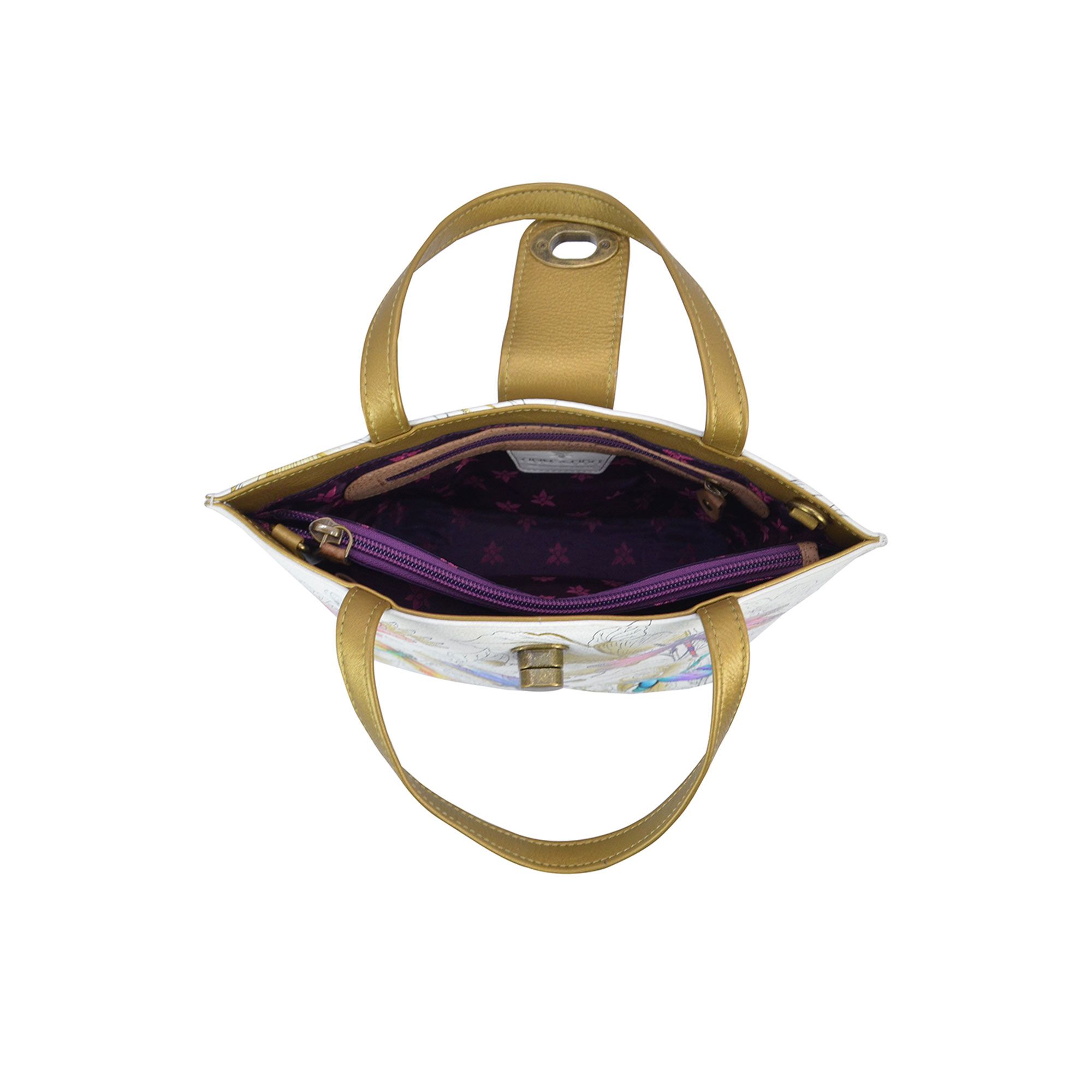 • borsa artigianale a mano in pelle con pannelli dipinti a mano