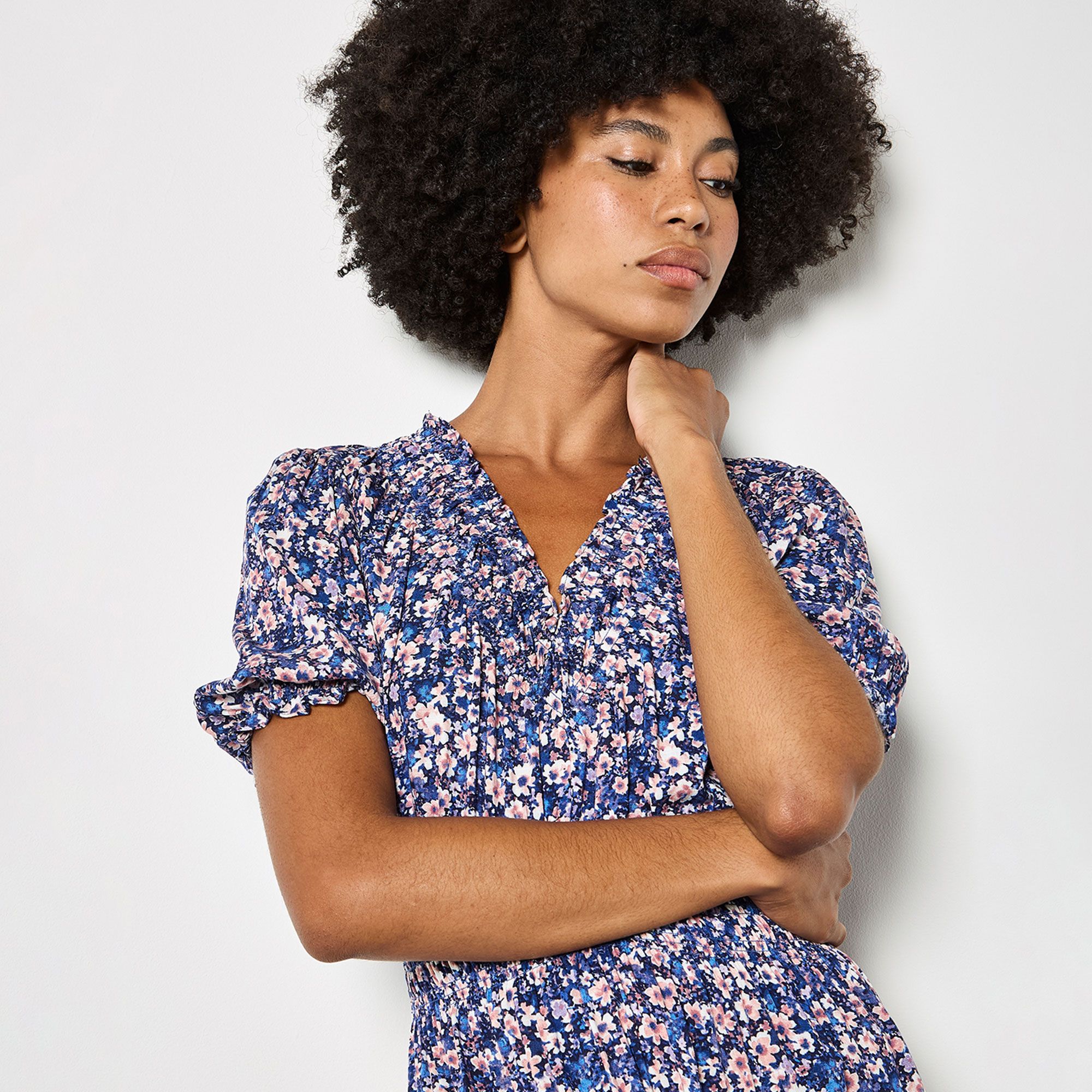 • le maniche a sbuffo con elastico al fondo aggiungono un dettaglio femminile e di tendenza