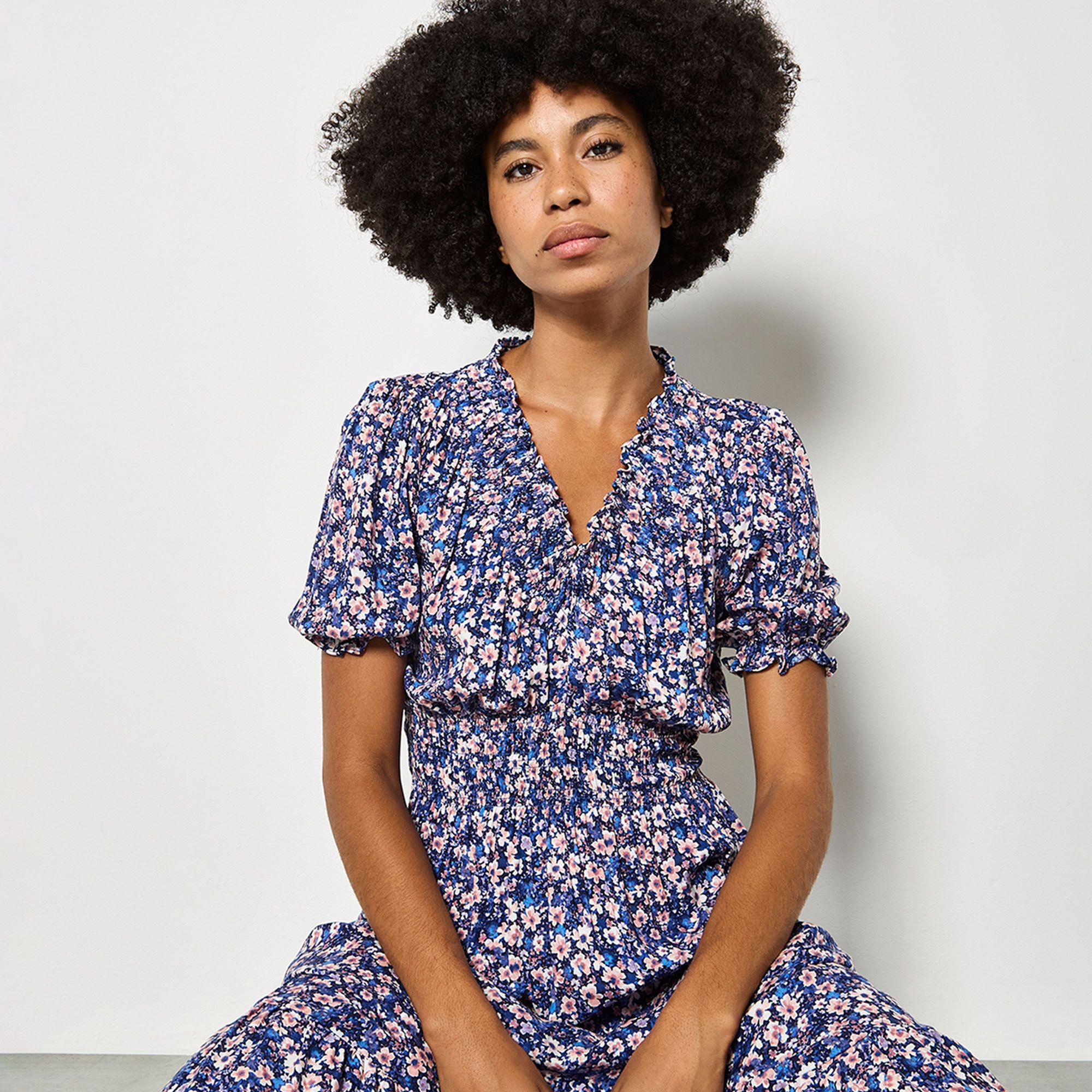 • il punto smock sullo scollo e in vita dona un tocco romantico e valorizza la figura