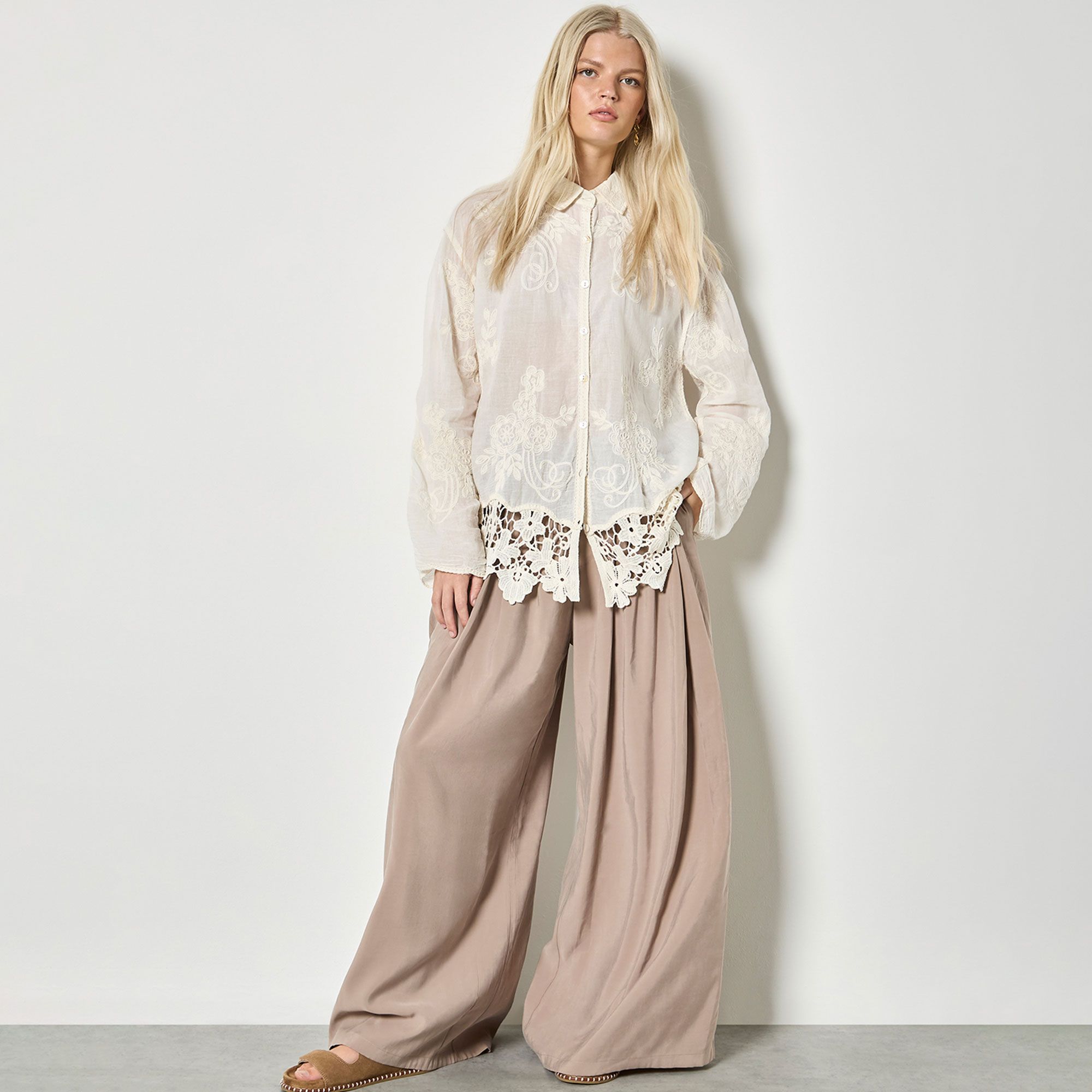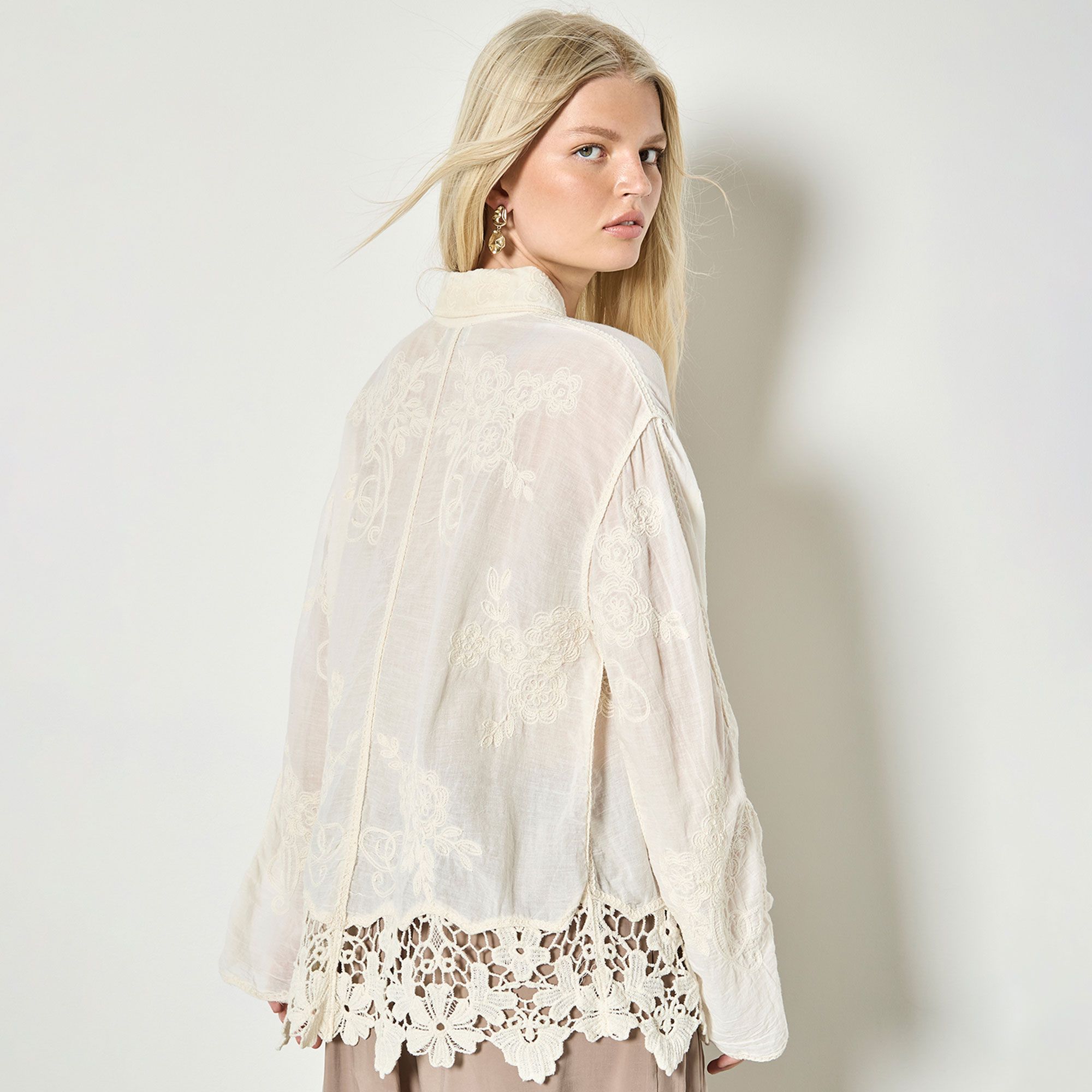 • camicia con bordo in pizzo a rete e ricamo floreale