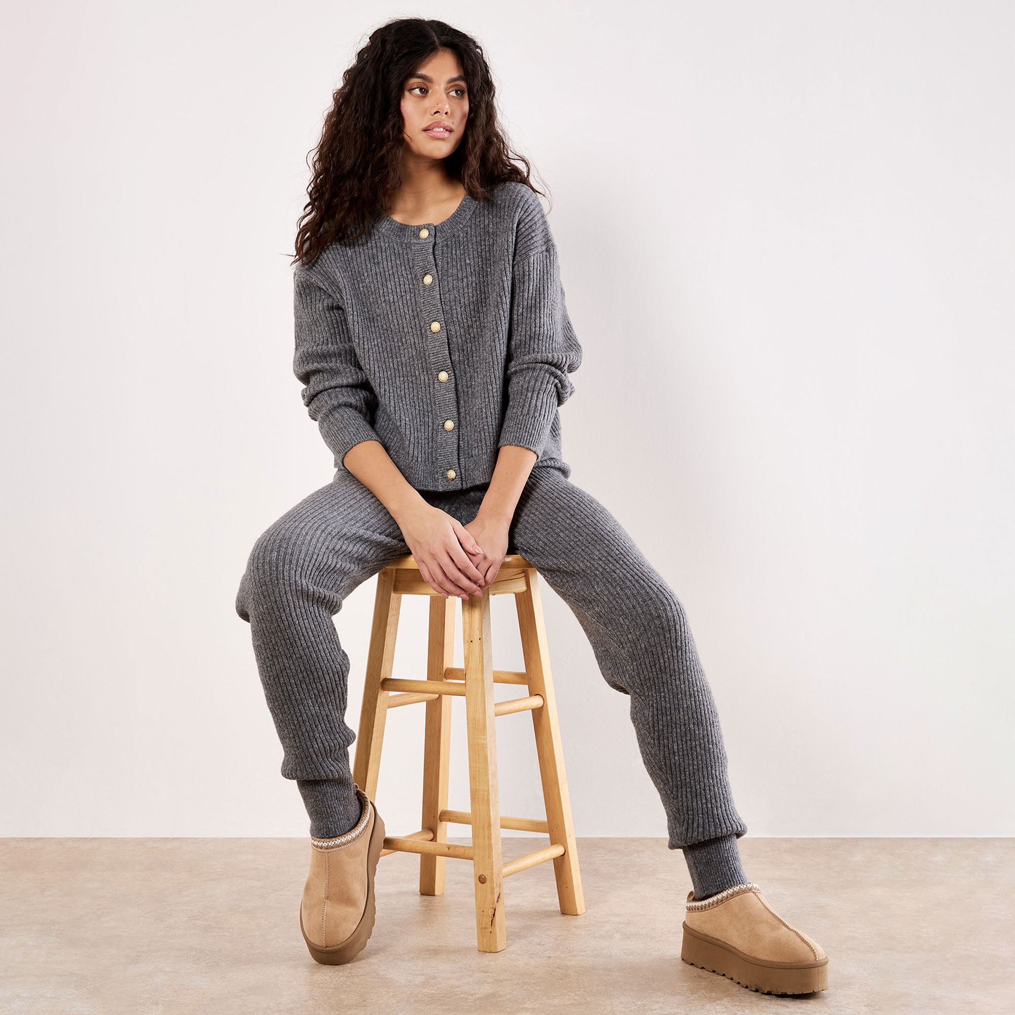 • pantaloni jogger in maglia a coste misto cotone stretch