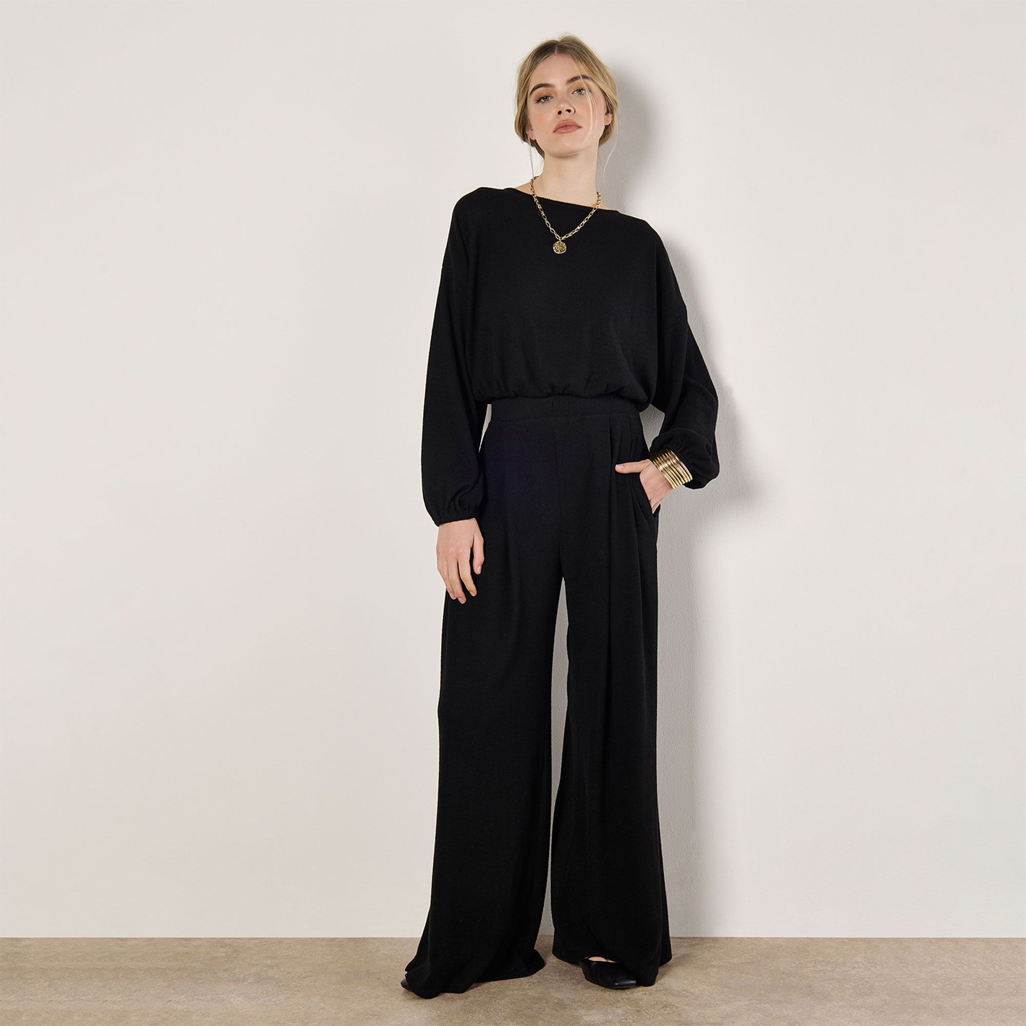 • pantaloni lunghi a gamba larga a coste