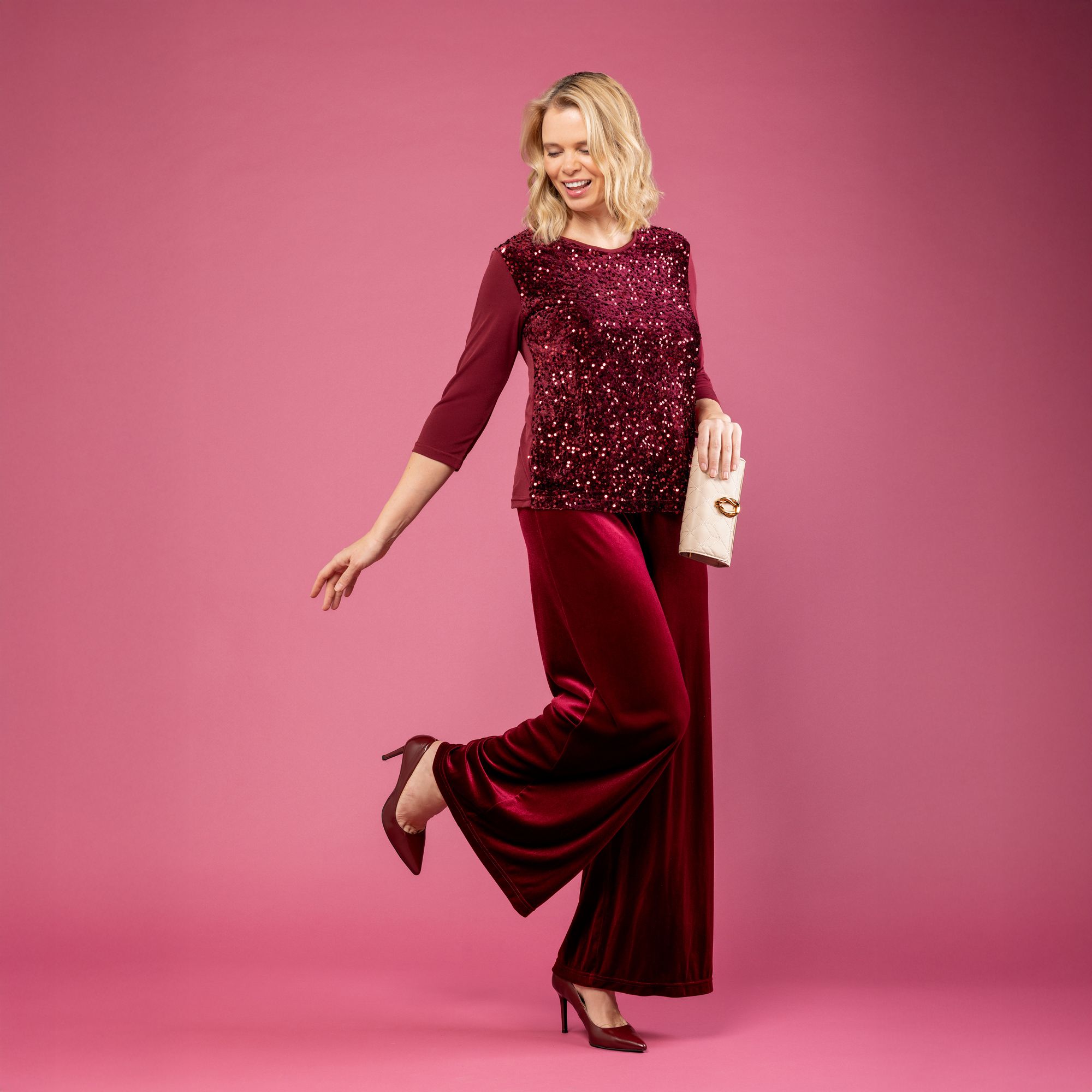 • il velluto ricamato con paillettes sul davanti aggiunge luminosità e raffinatezza al tuo look