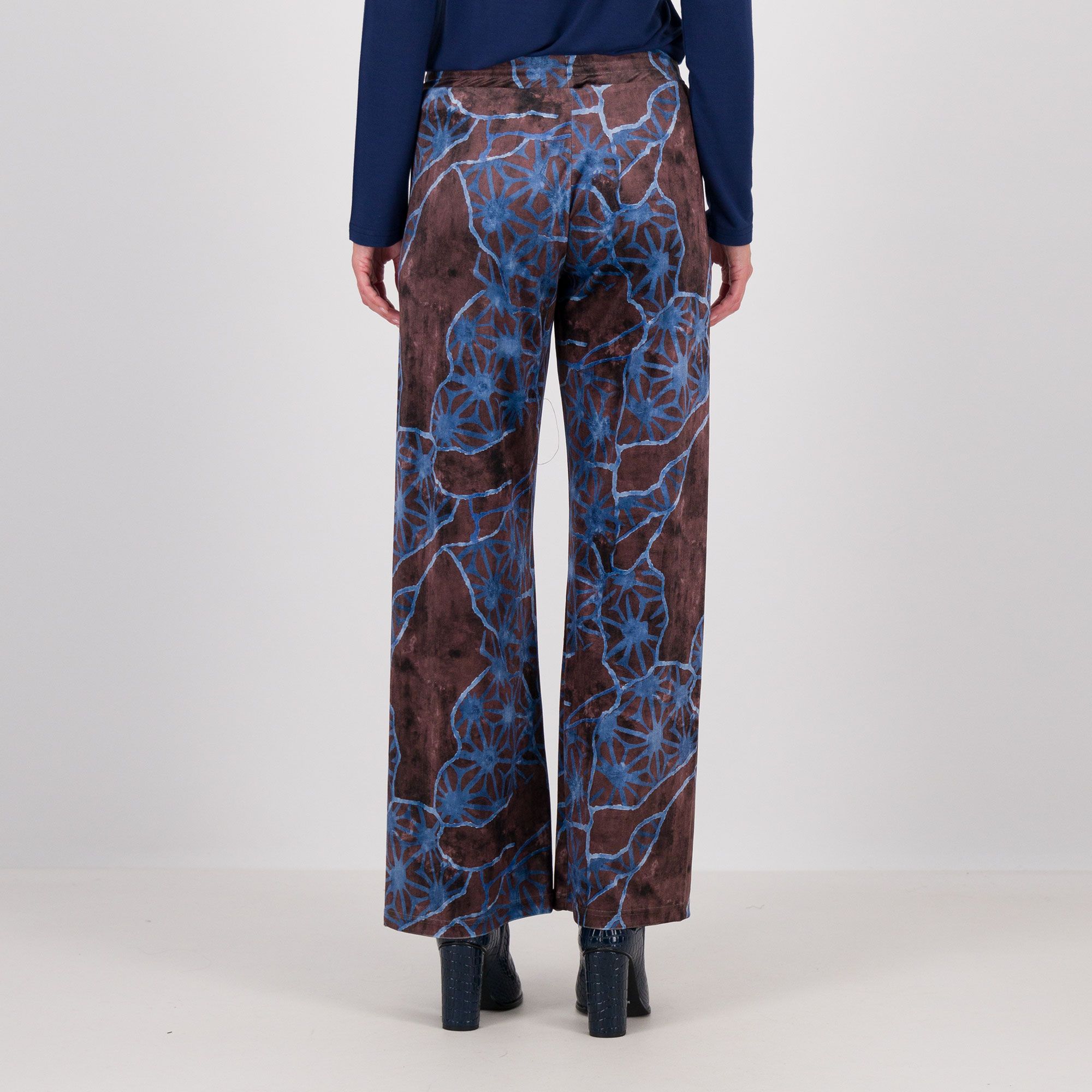 • pantaloni palazzo in velluto jersey fantasia
