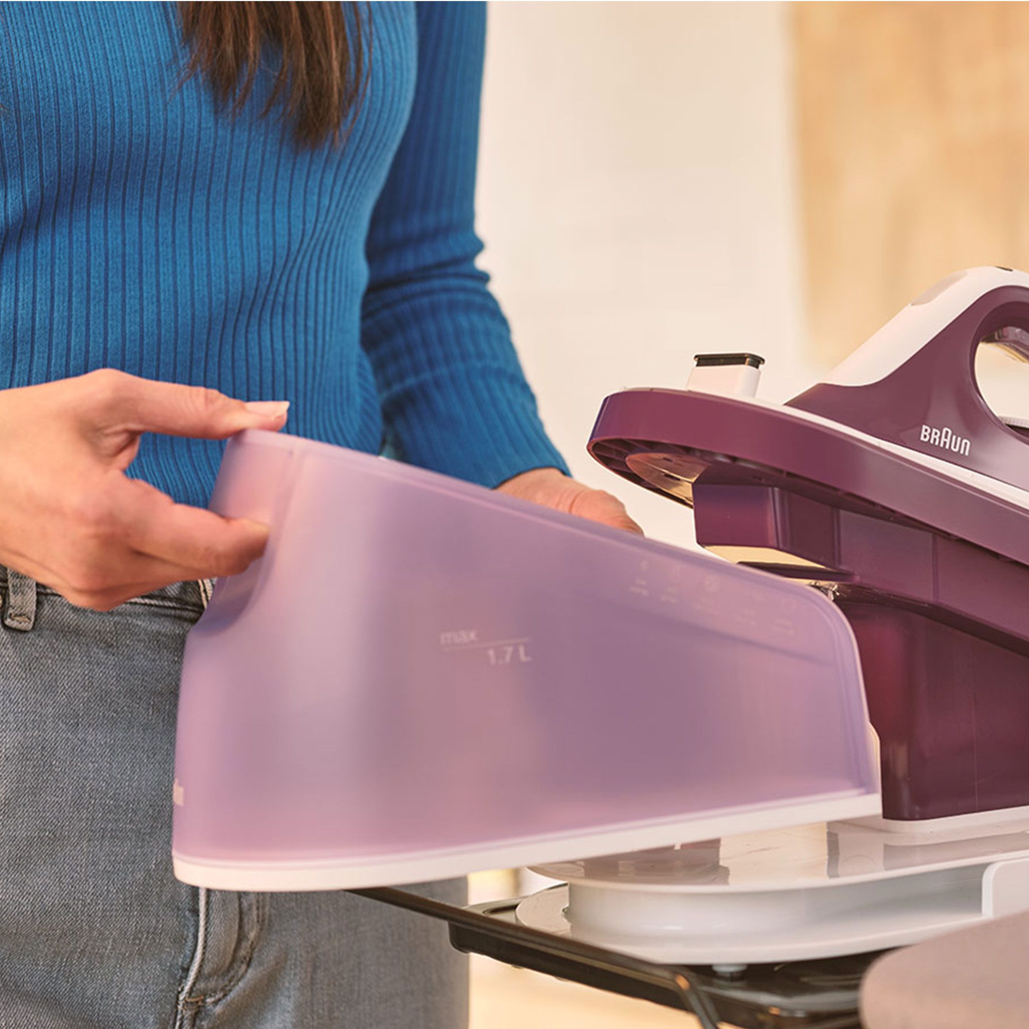 • la tanica removibile da 1,7 l ti permette di stirare a lungo senza interruzioni per ricaricare l’acqua