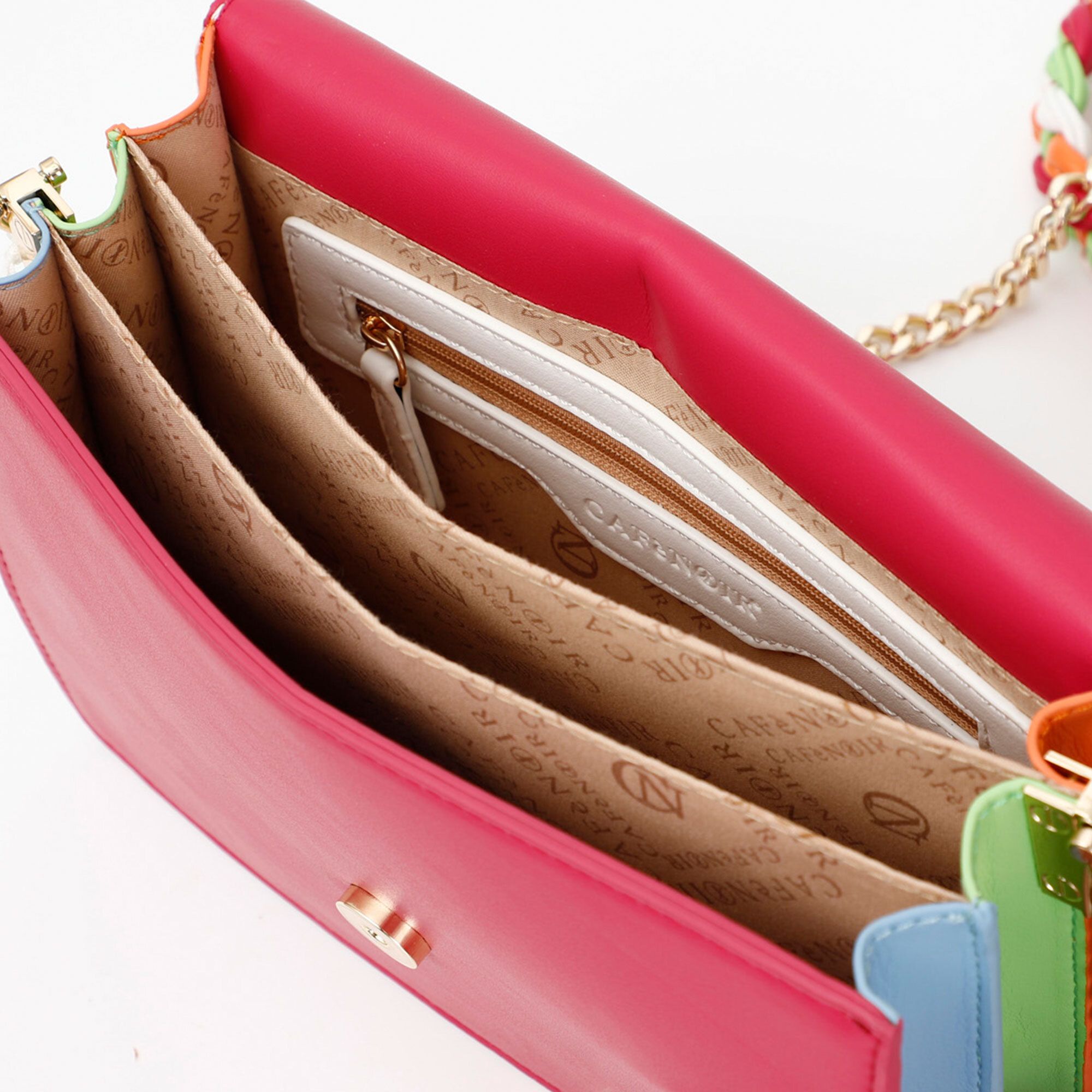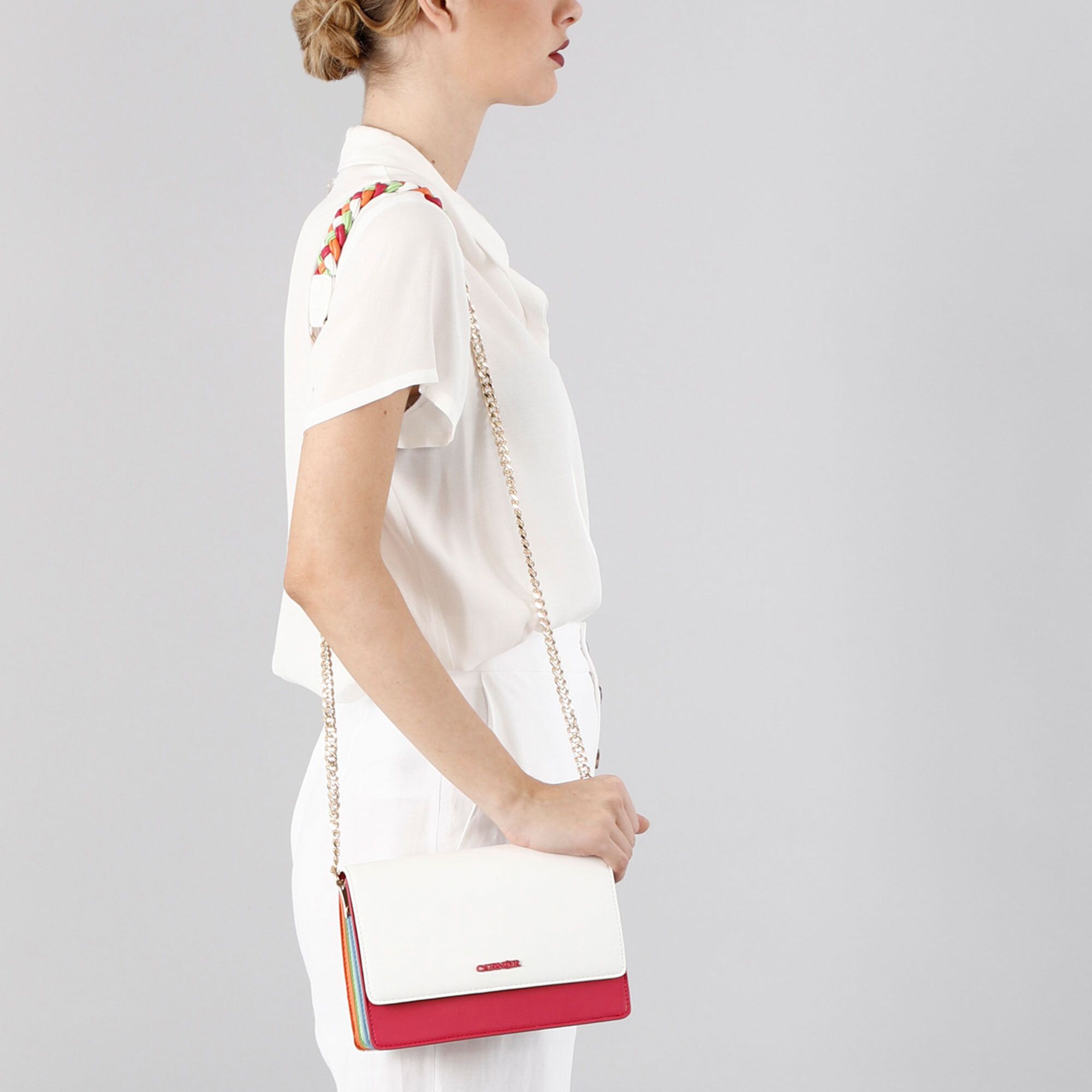 • tracolla in catena e spallaccio centrale intrecciato multicolore