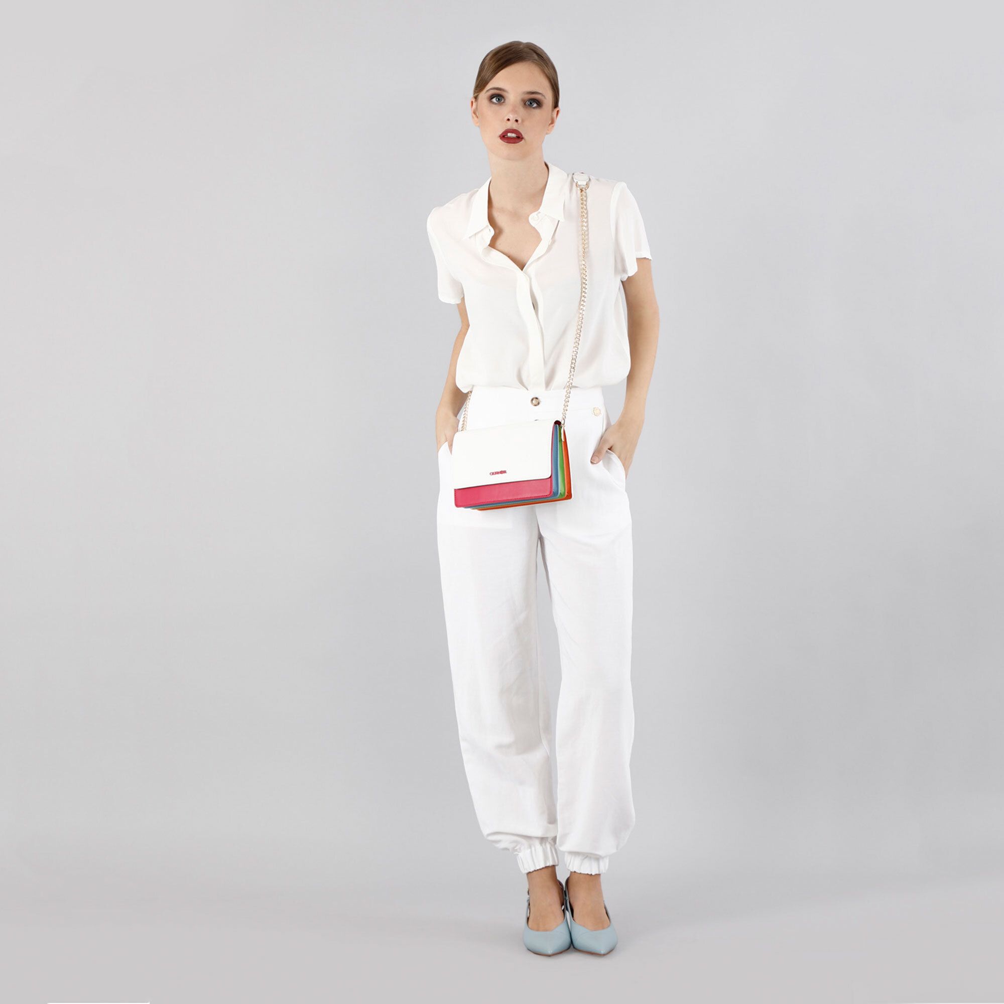• pannello frontale e fianchi della borsa colorati