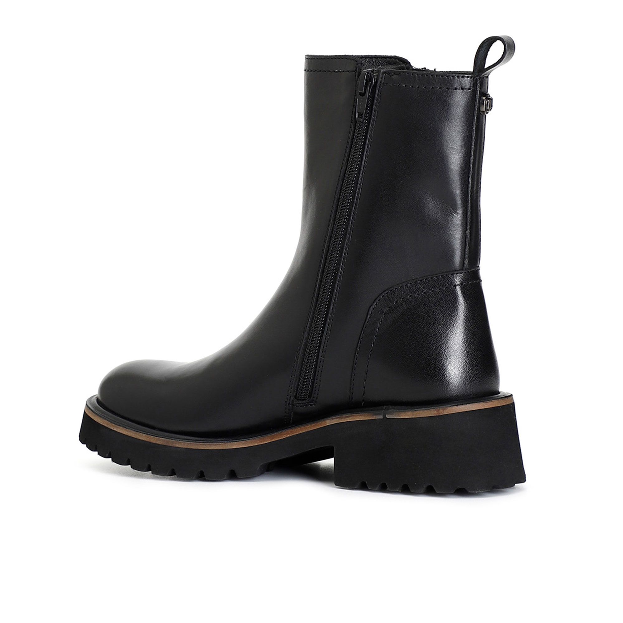 • stivaletti in pelle, liscia per variante nero e scamosciata per varianti bosco e taupe