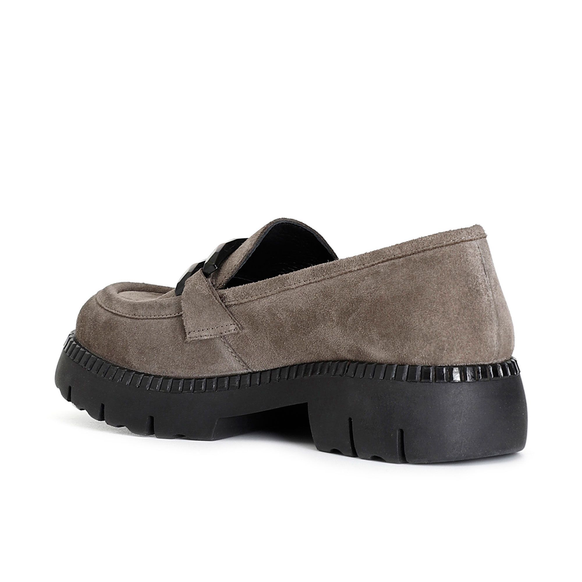 Perfetti per un look casual chic, questi mocassini in pelle scamosciata sono ideali per le tue giornate dinamiche. Il morsetto decorativo aggiunge un tocco di eleganza.