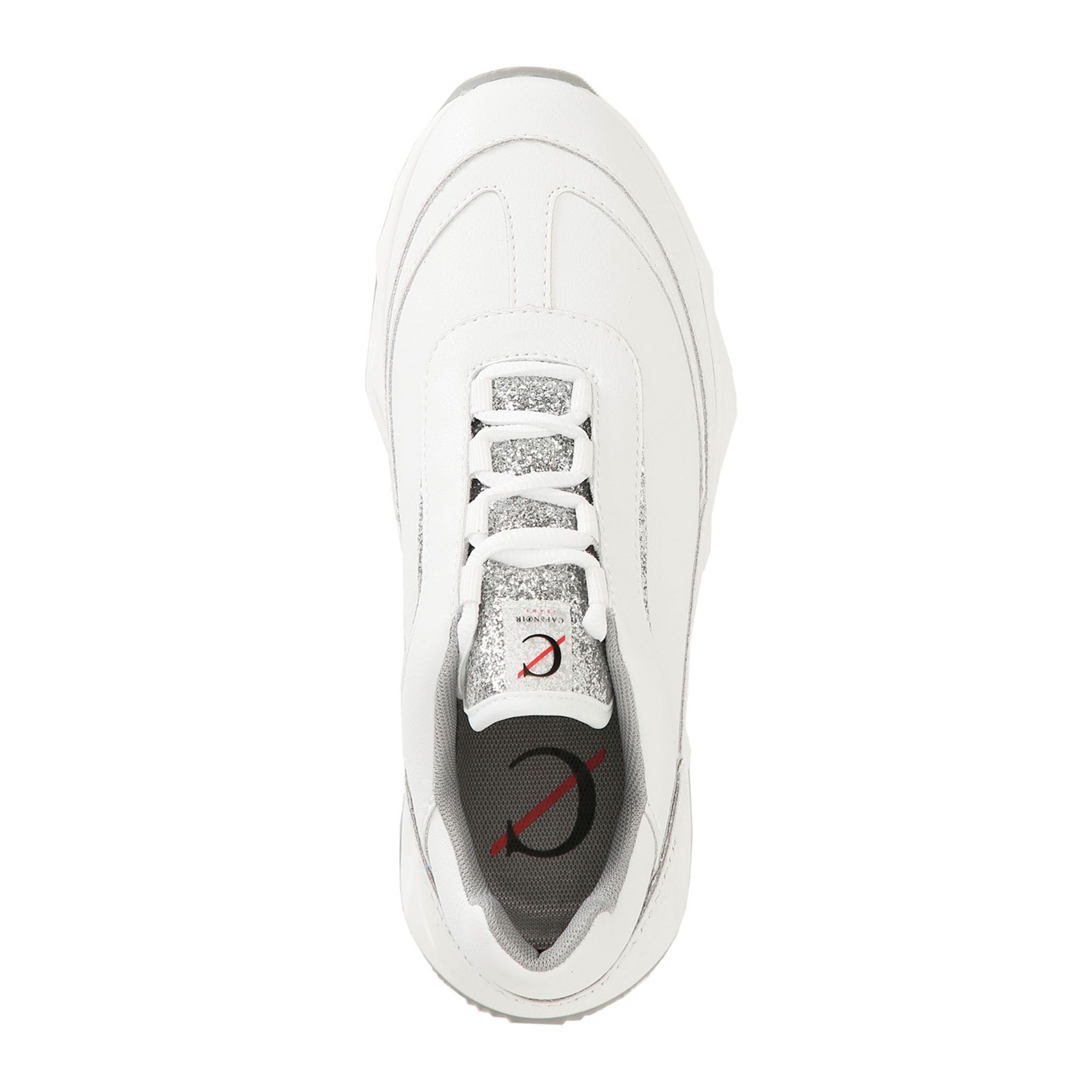 • sneaker stringata con tomaia in cuoio rivestito e inserti in glitter
