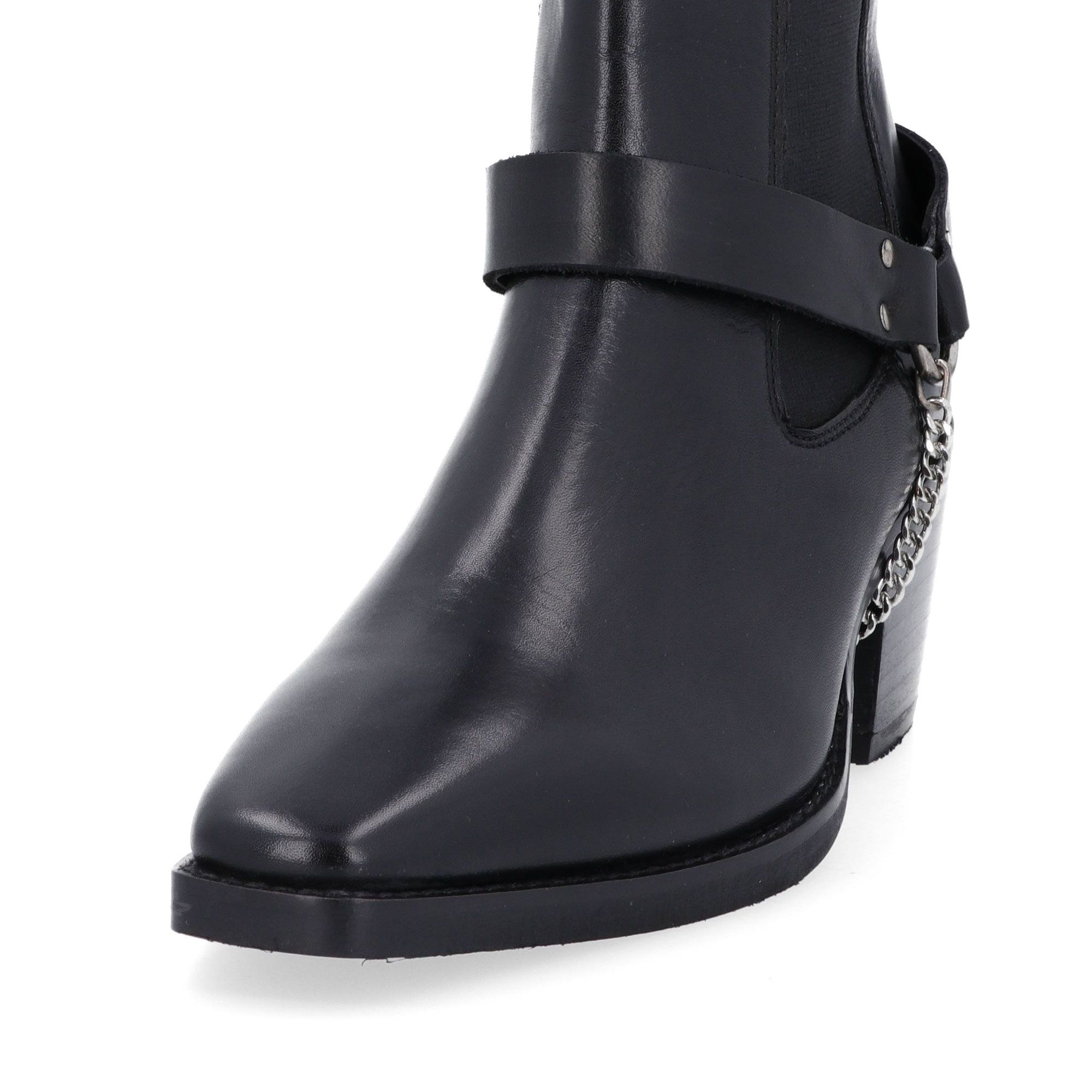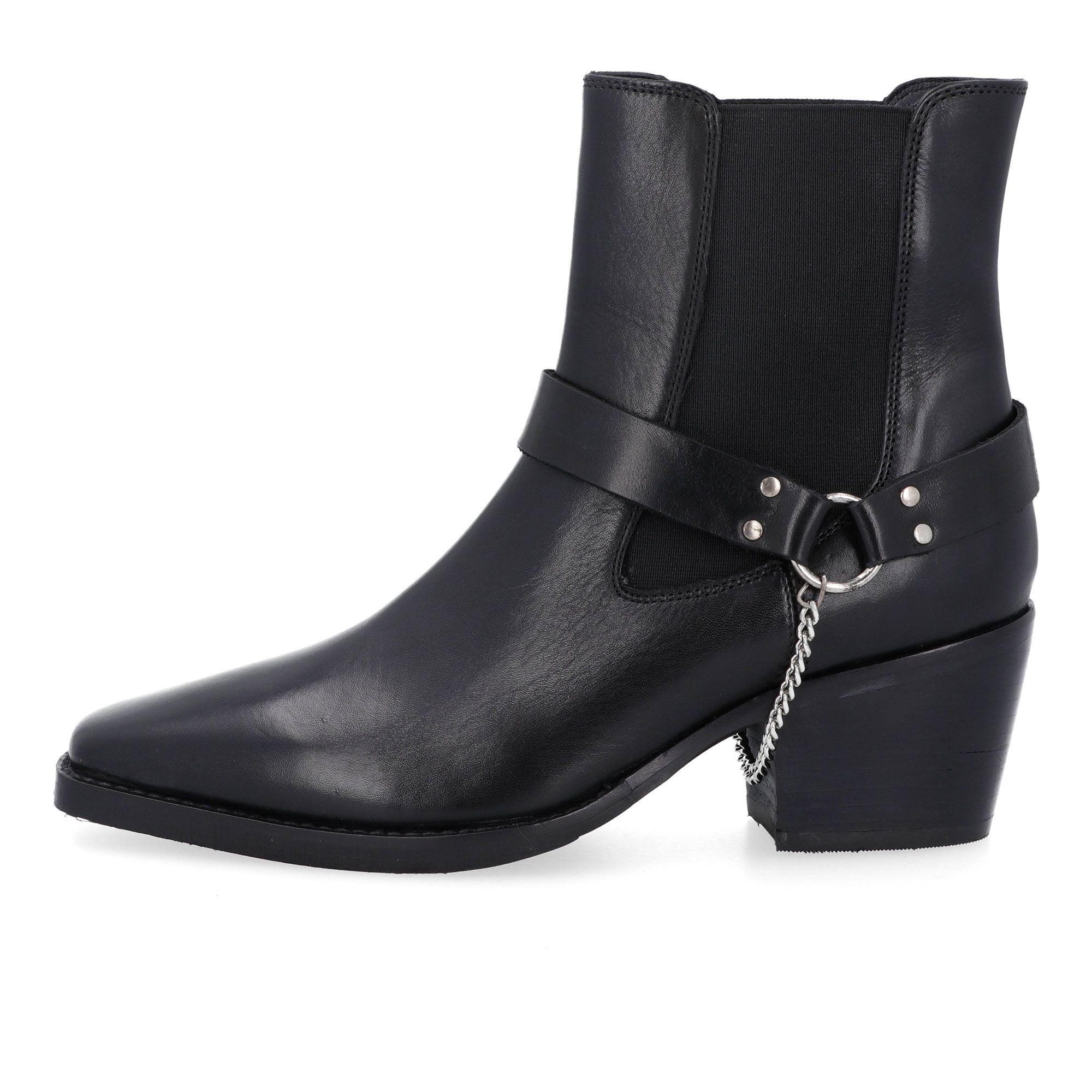 Questi texani in pelle sono l'accessorio perfetto per un look audace e originale. Gli inserti elastici e il tacco effetto legno aggiungono comfort e stile al tuo outfit quotidiano.