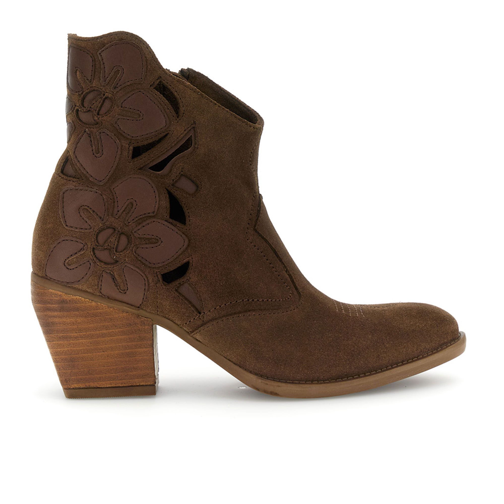 Questi tronchetti uniscono la raffinatezza della pelle scamosciata ai dettagli floreali, perfetti per dare un tocco romantico e femminile ai tuoi look di stagione.