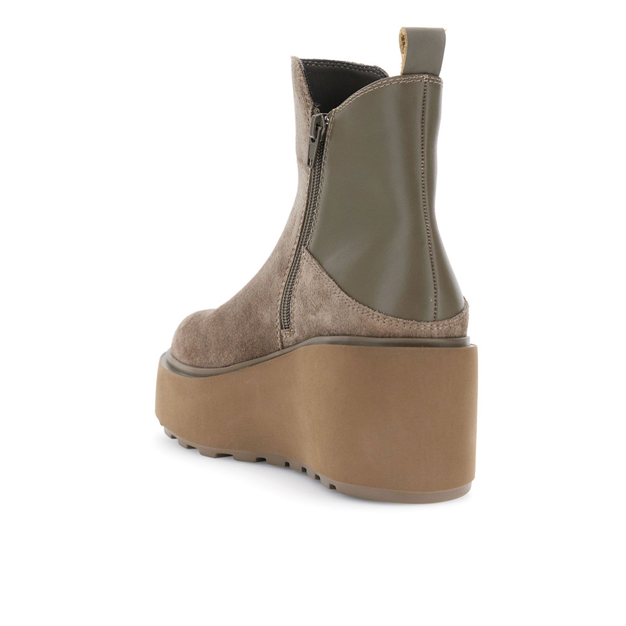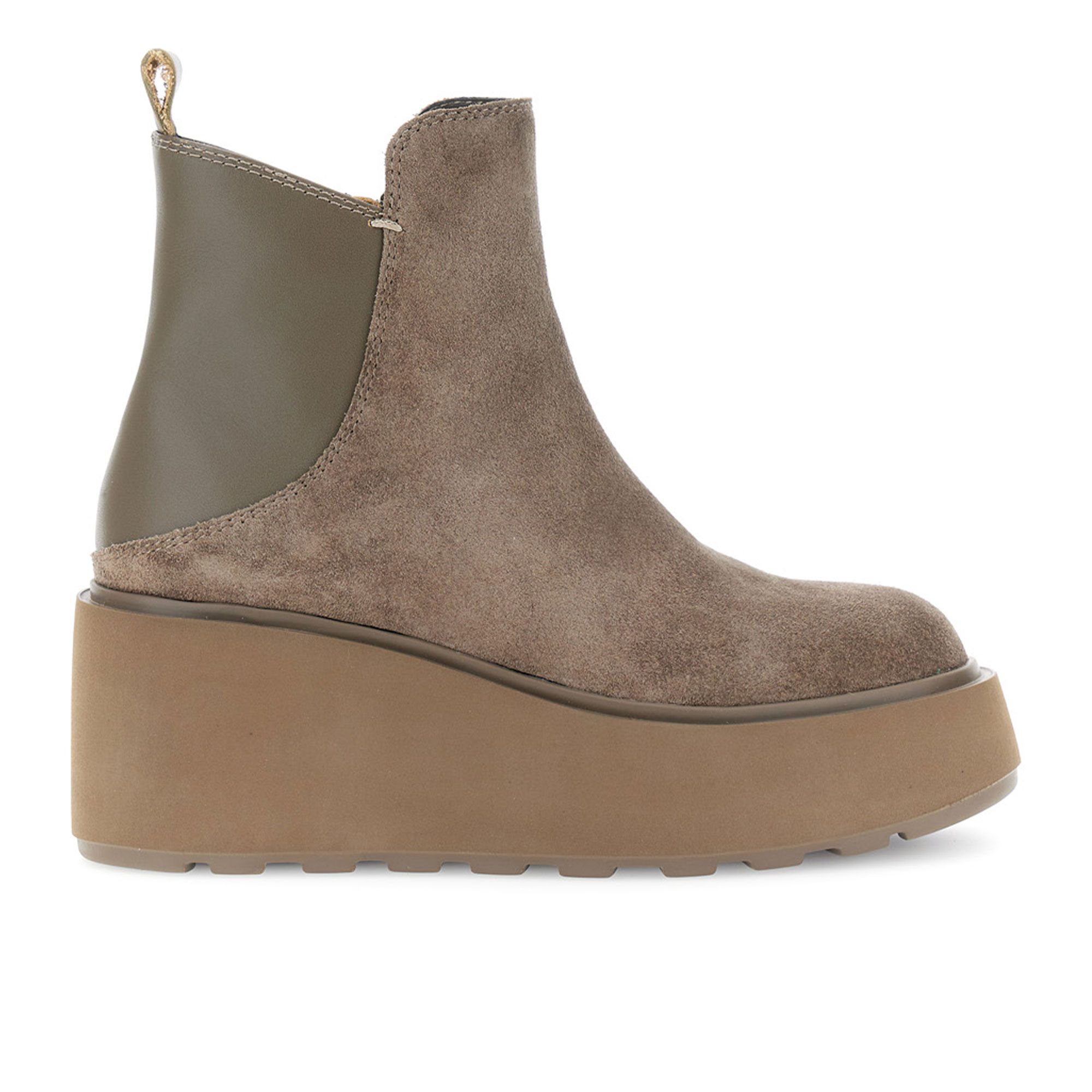 • tronchetti in pelle scamosciata con inserto in pelle liscia sul retro