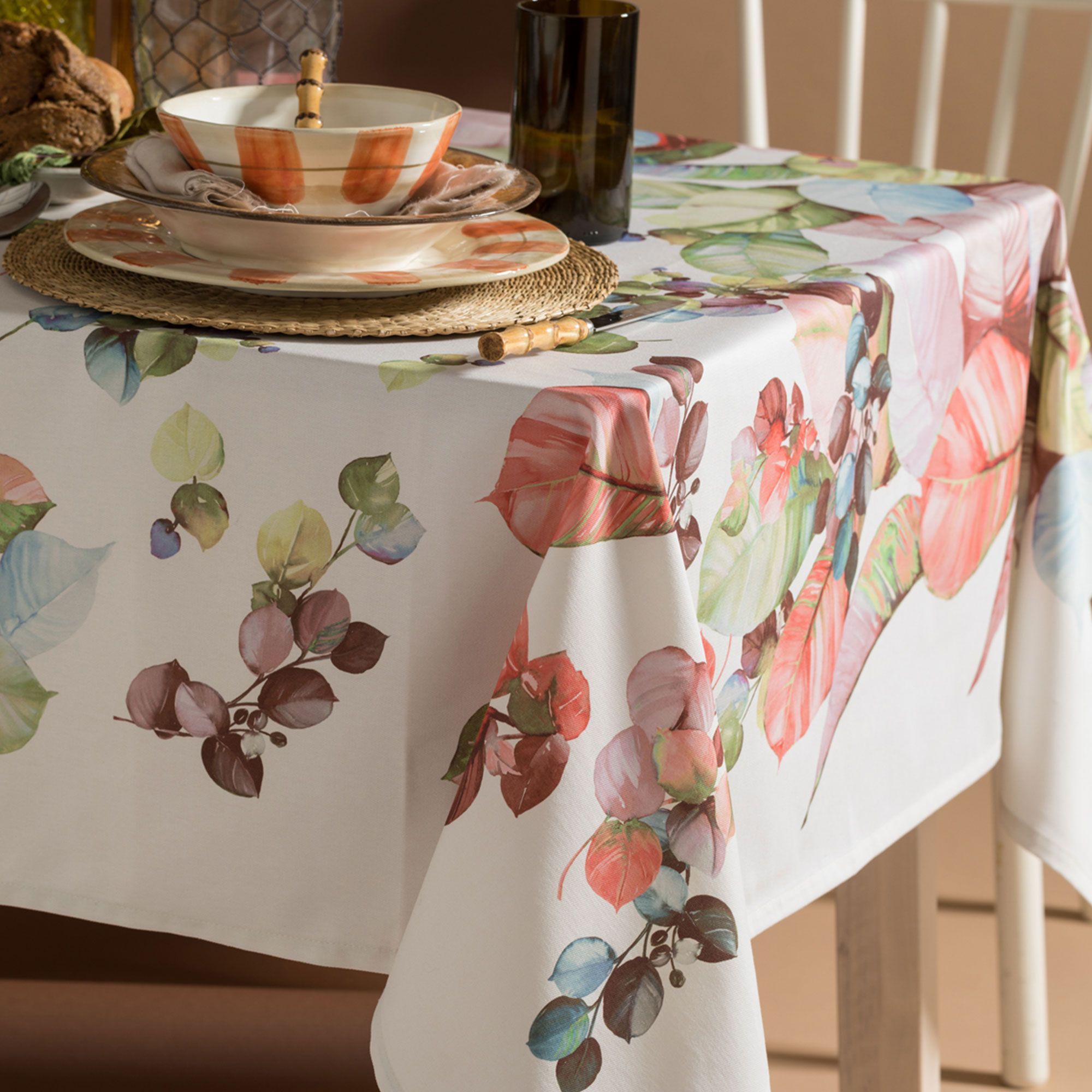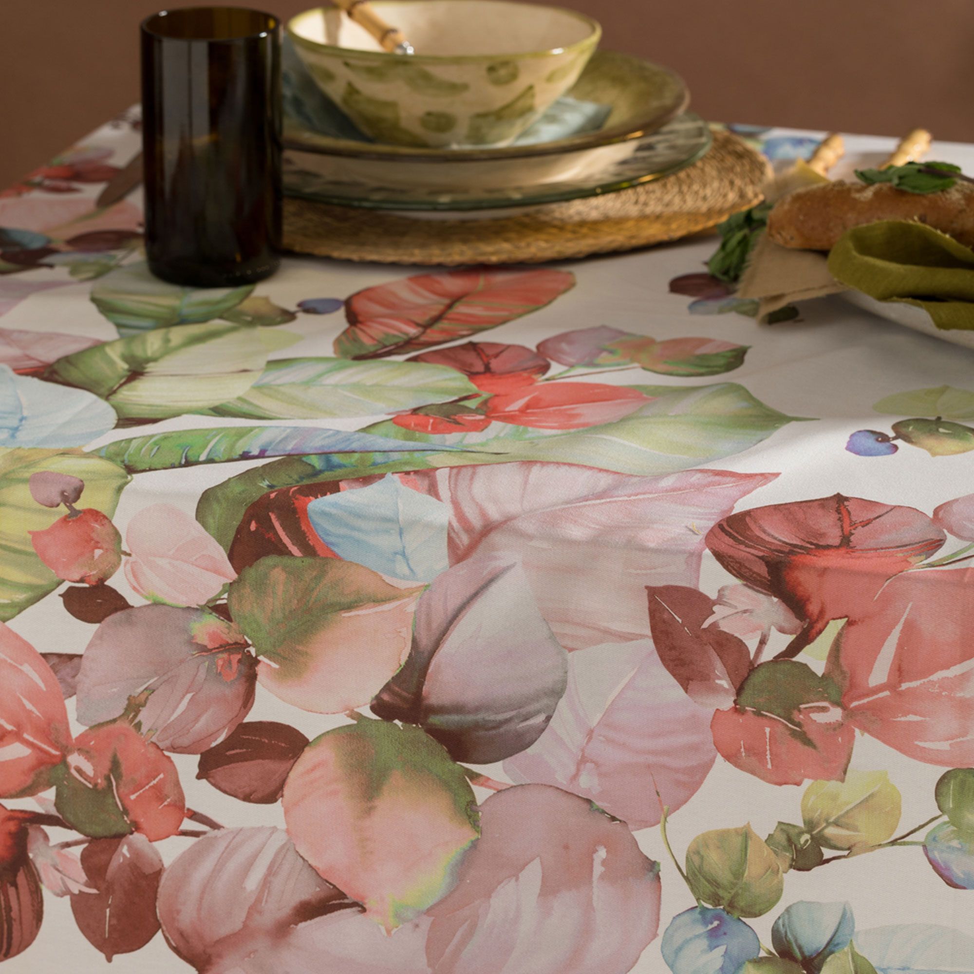 • tovaglia in cotone stampato con trattamento Twill antimacchia
