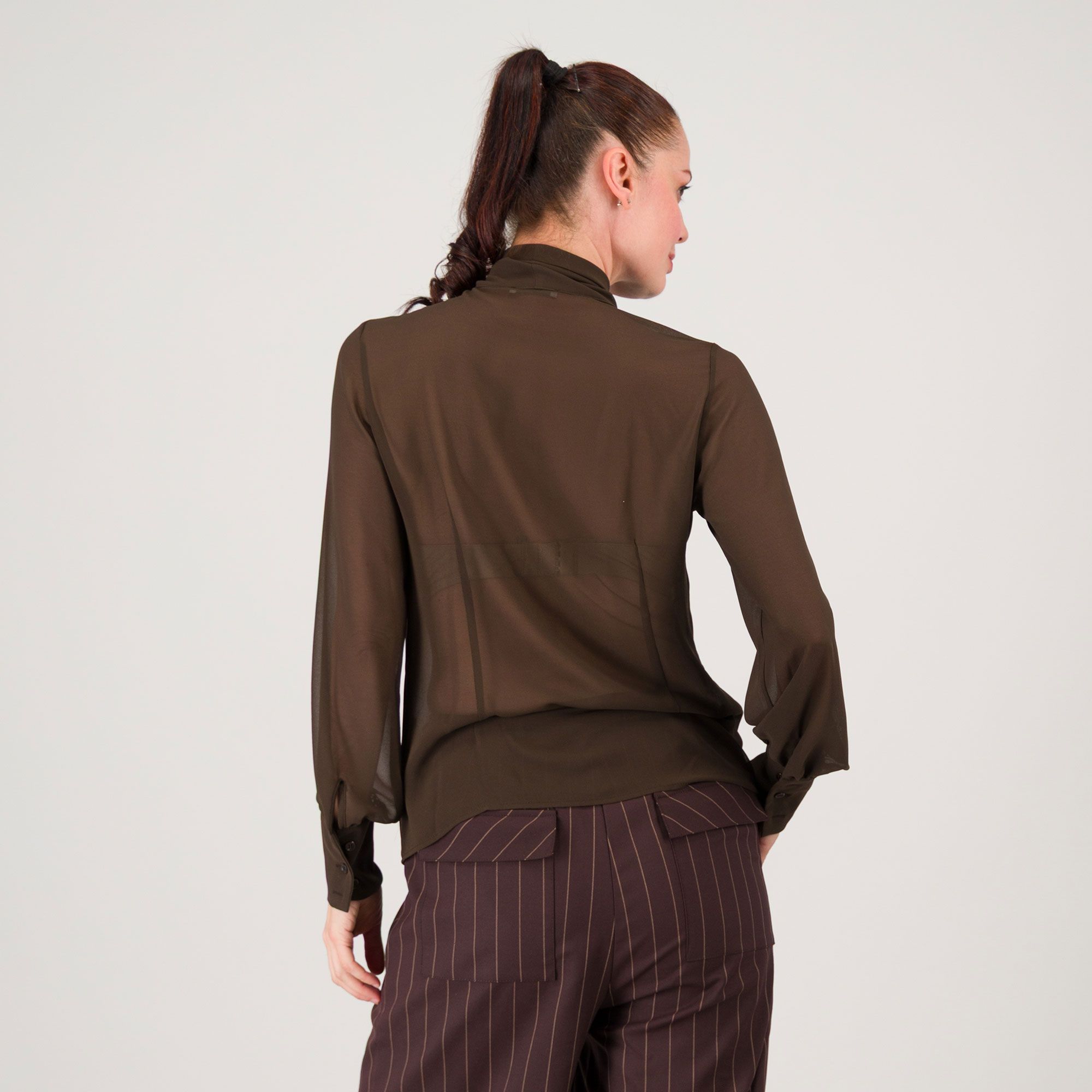 • maniche lunghe con arriccio e polso cucito e ribattuto