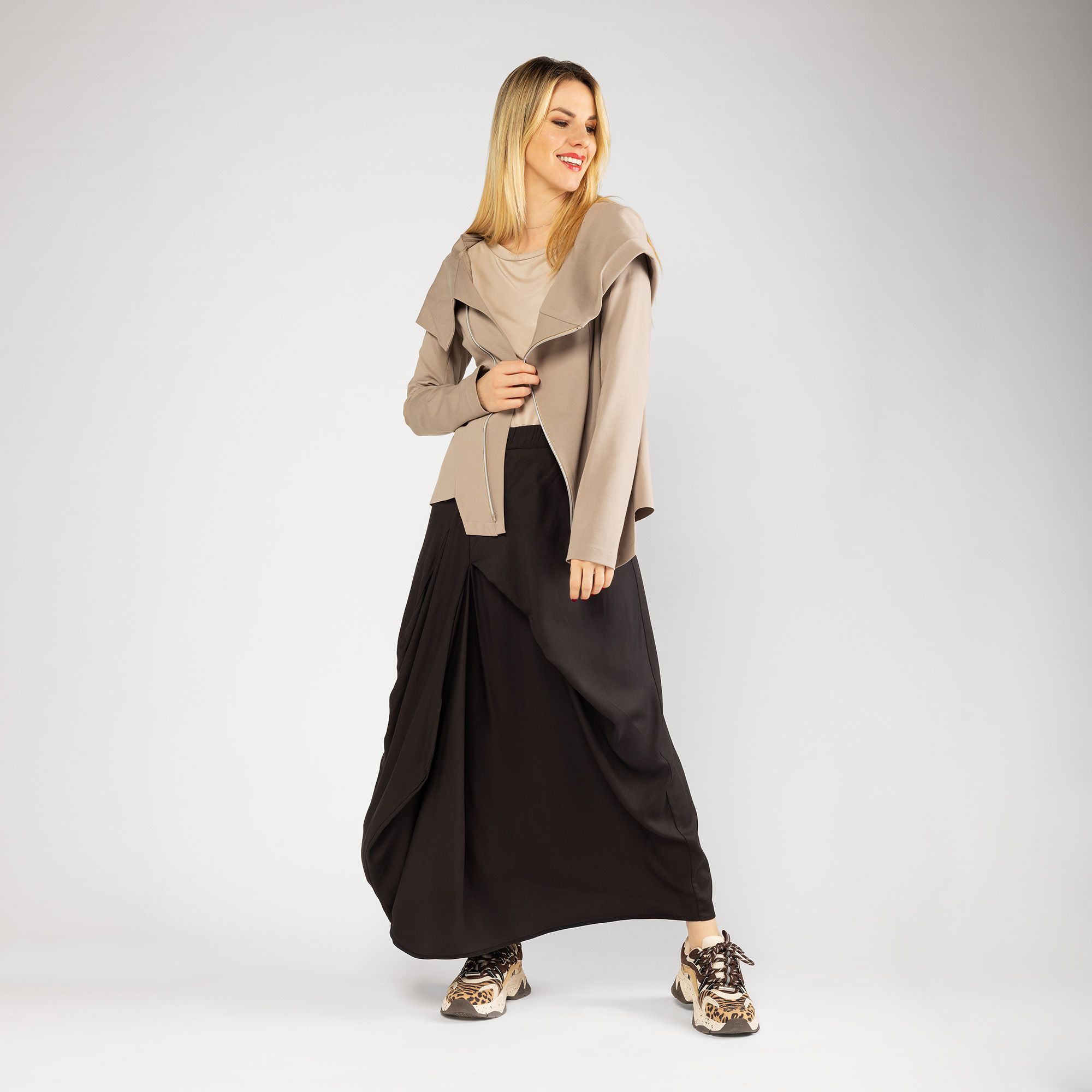 • il design asimmetrico e la zip obliqua donano un tocco moderno e dinamico ai tuoi look