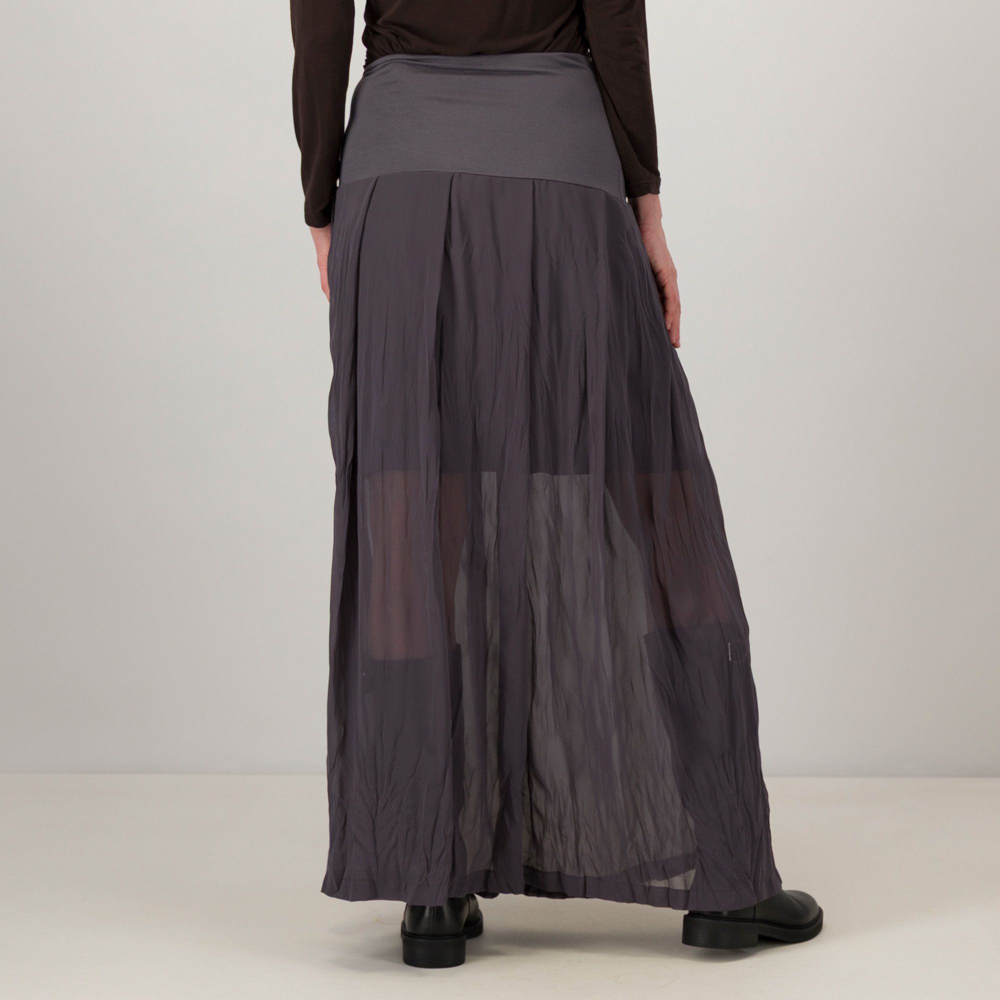 • gonna in jersey di viscosa e georgette con pieghe frontali e posteriori