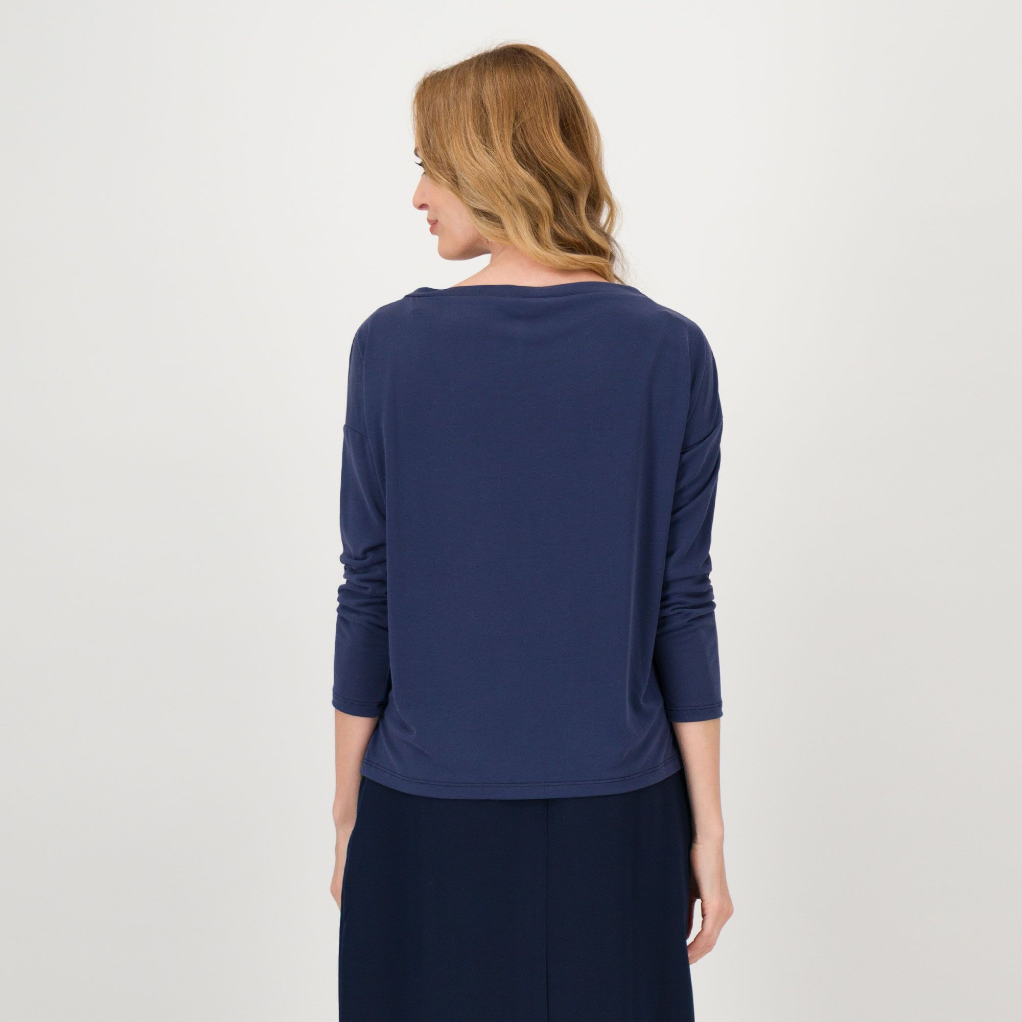 • lo scollo a barchetta dona un tocco di eleganza senza tempo