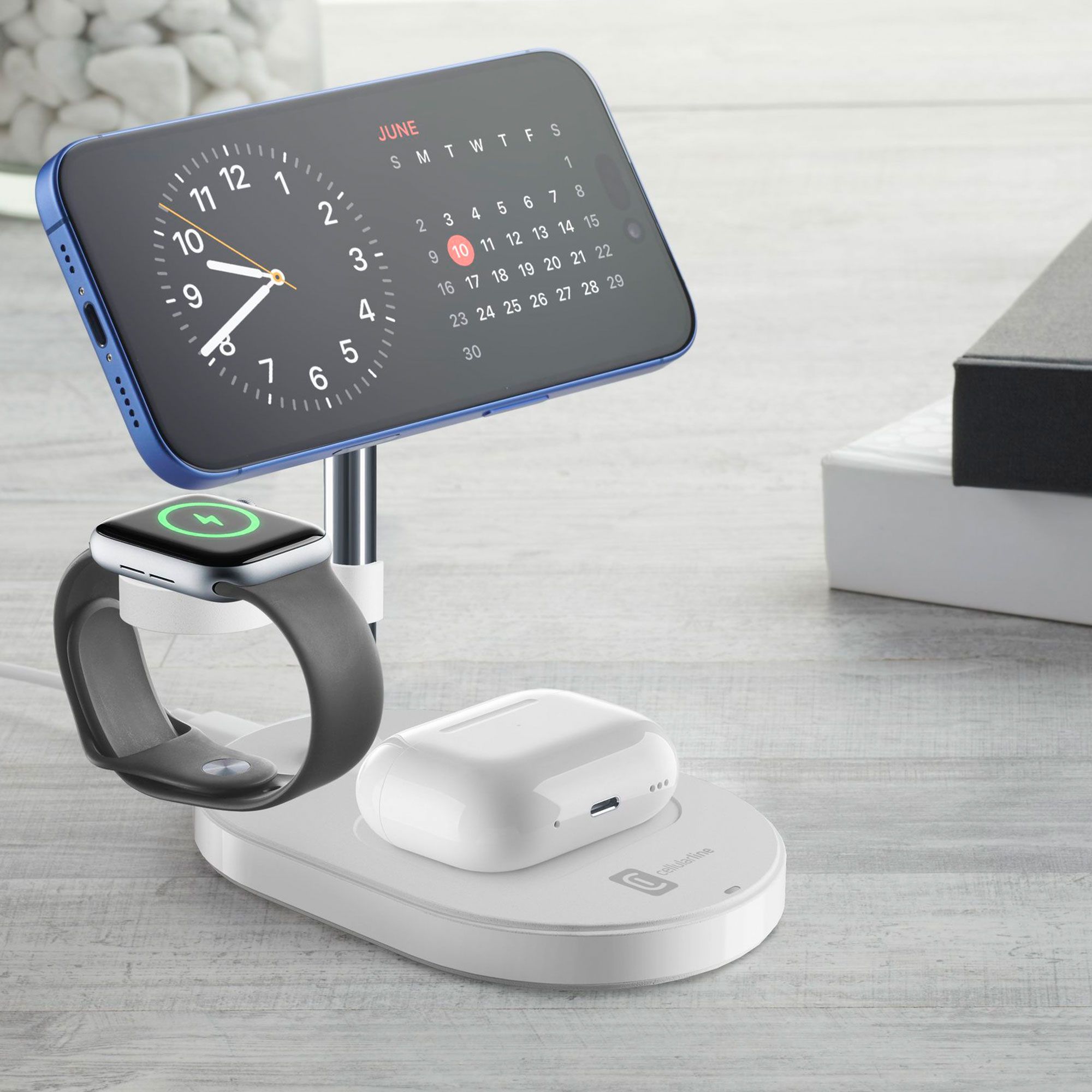 • Mag Trio ti permette di ricaricare contemporaneamente smartphone, auricolari e smartwatch in modo pratico e ordinato