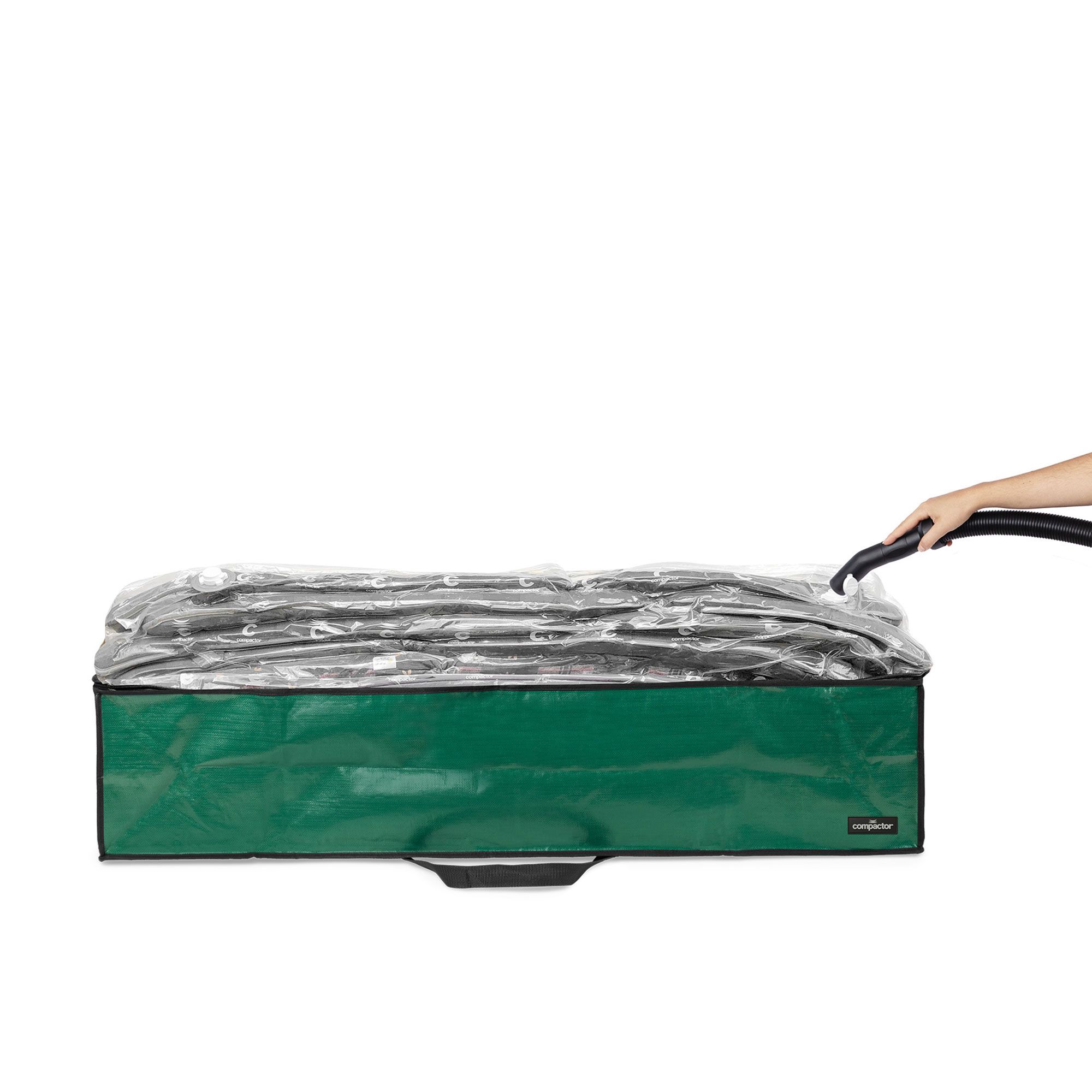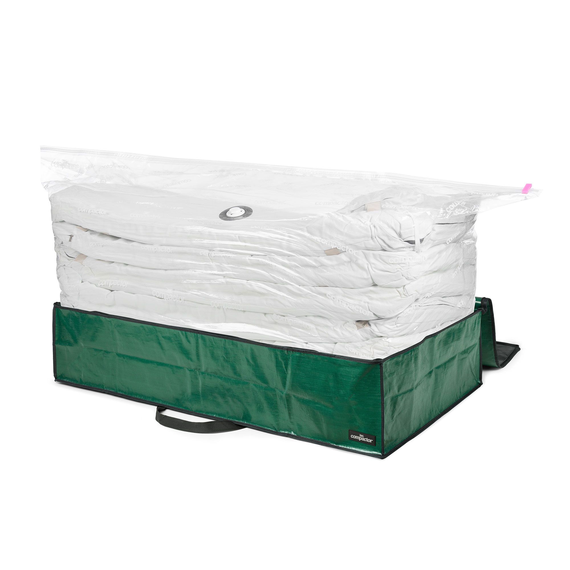 • sacco salvaspazio con custodia integrata e chiusura a zip
