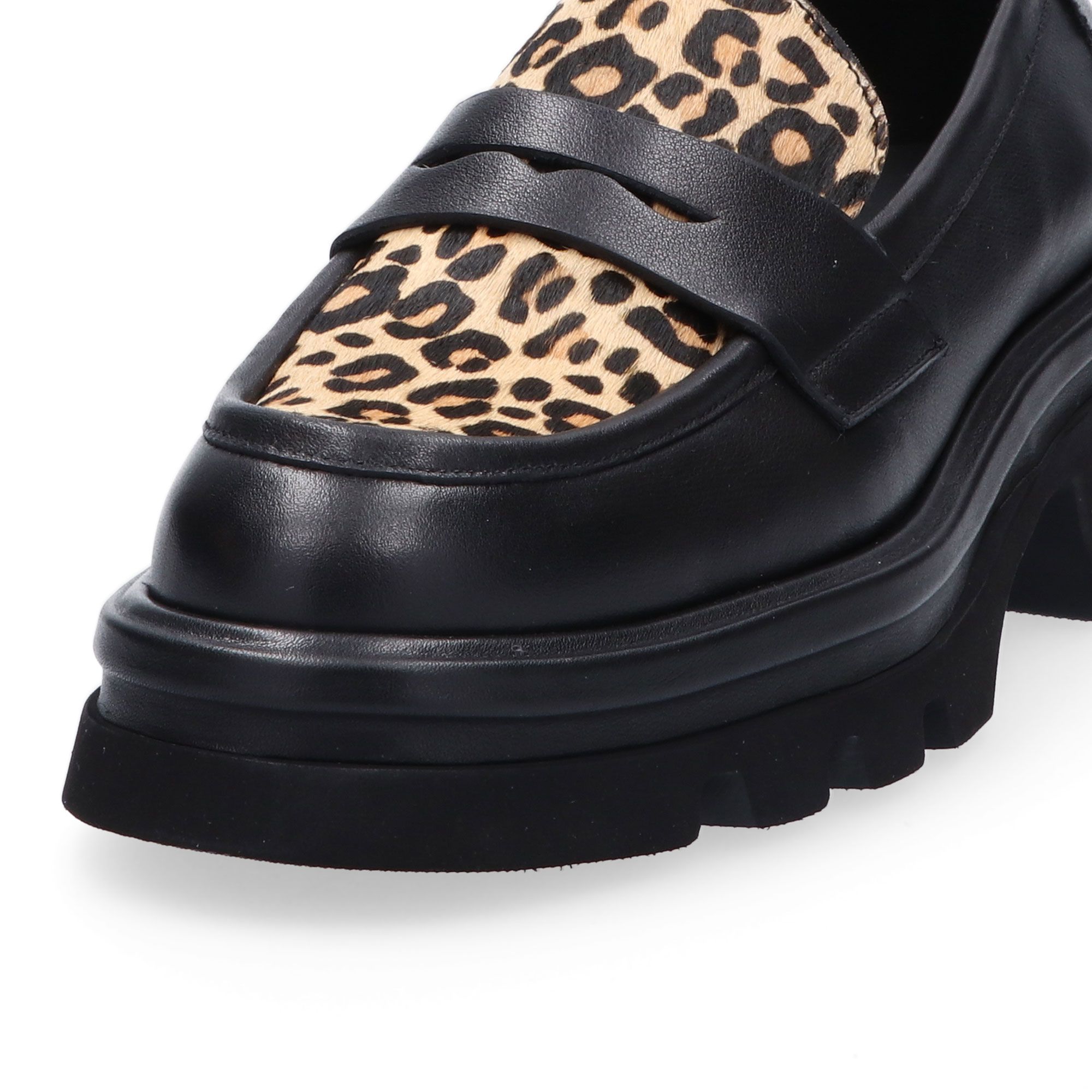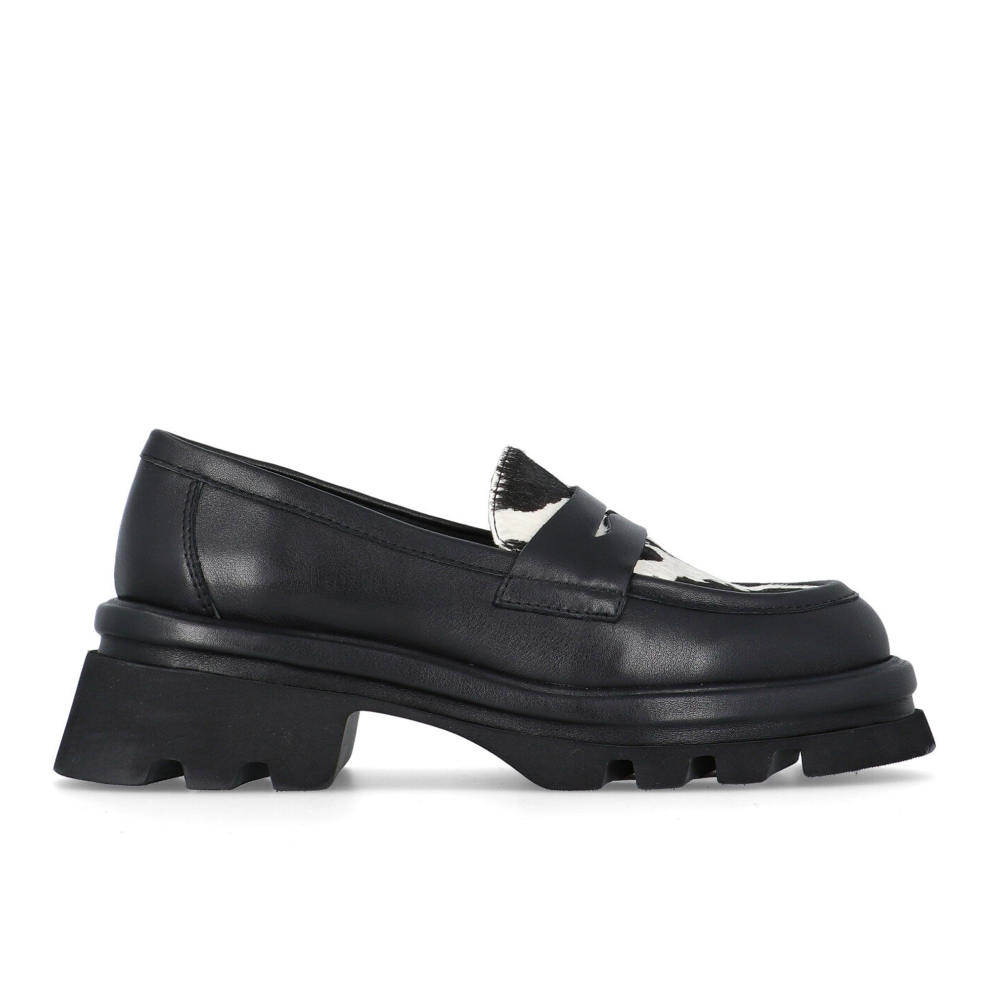 • mocassini in pelle con inserti in cavallino e tacco