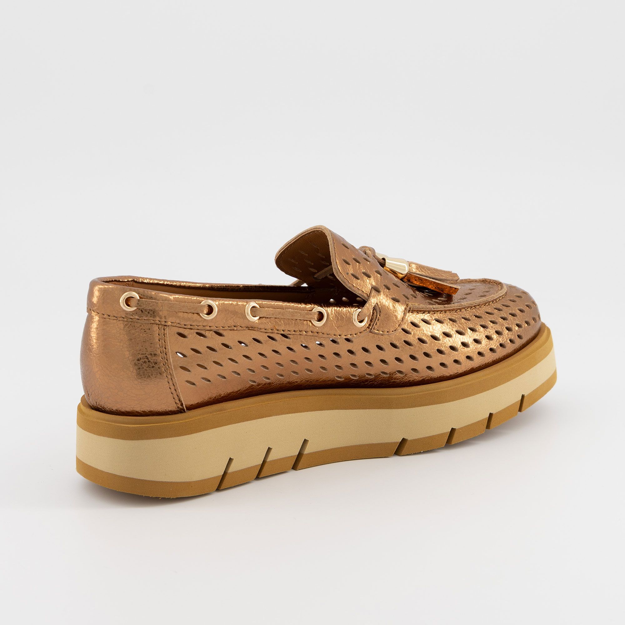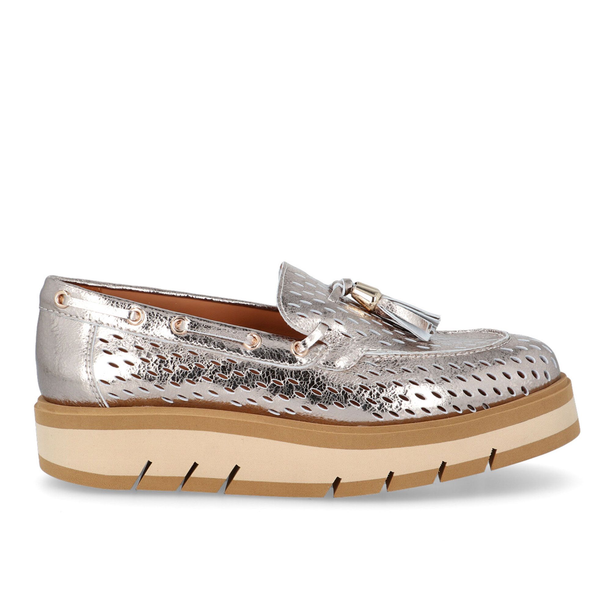 • mocassini slip on in pelle metallizzata con tomaia traforata