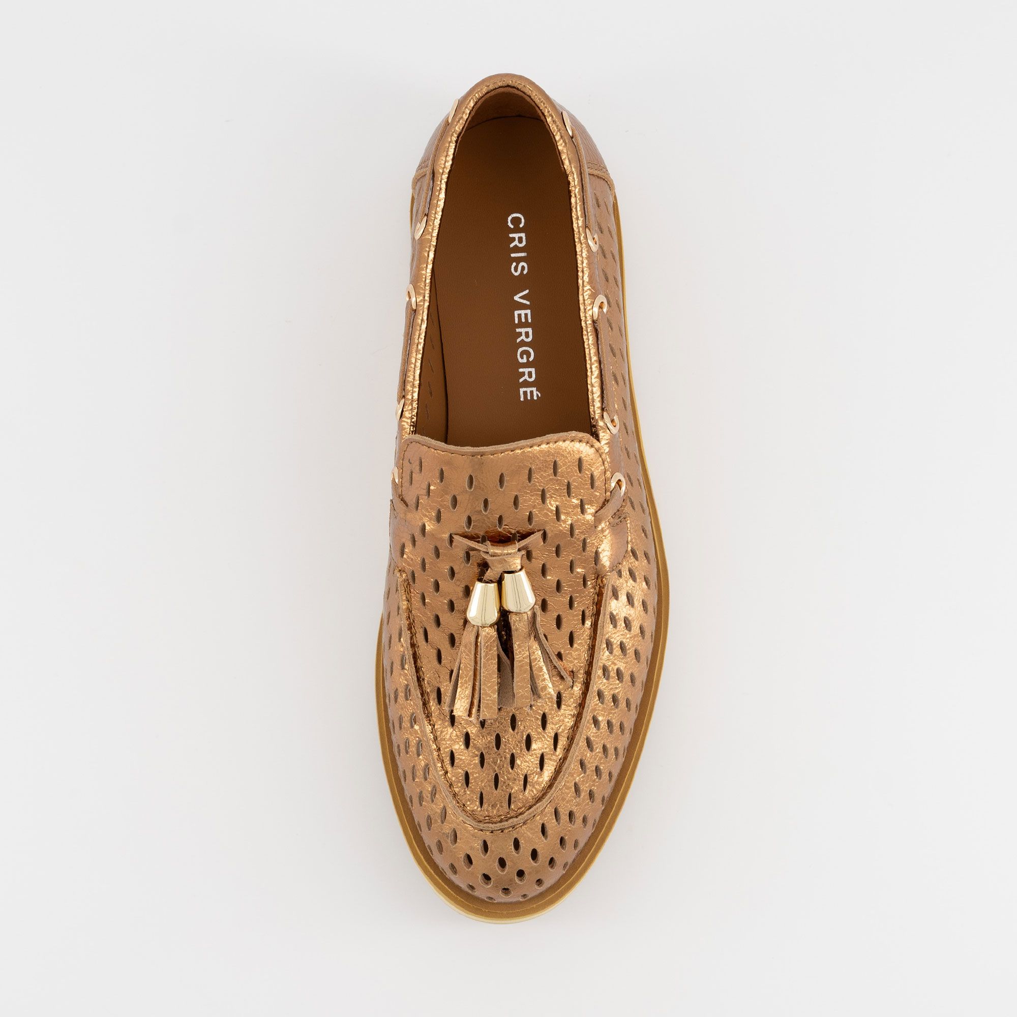Perfetti per aggiungere un tocco luminoso e sofisticato ai tuoi look quotidiani, i mocassini Cris Vergré uniscono comfort e stile con la loro pelle metallizzata e la morbida soletta in memory foam