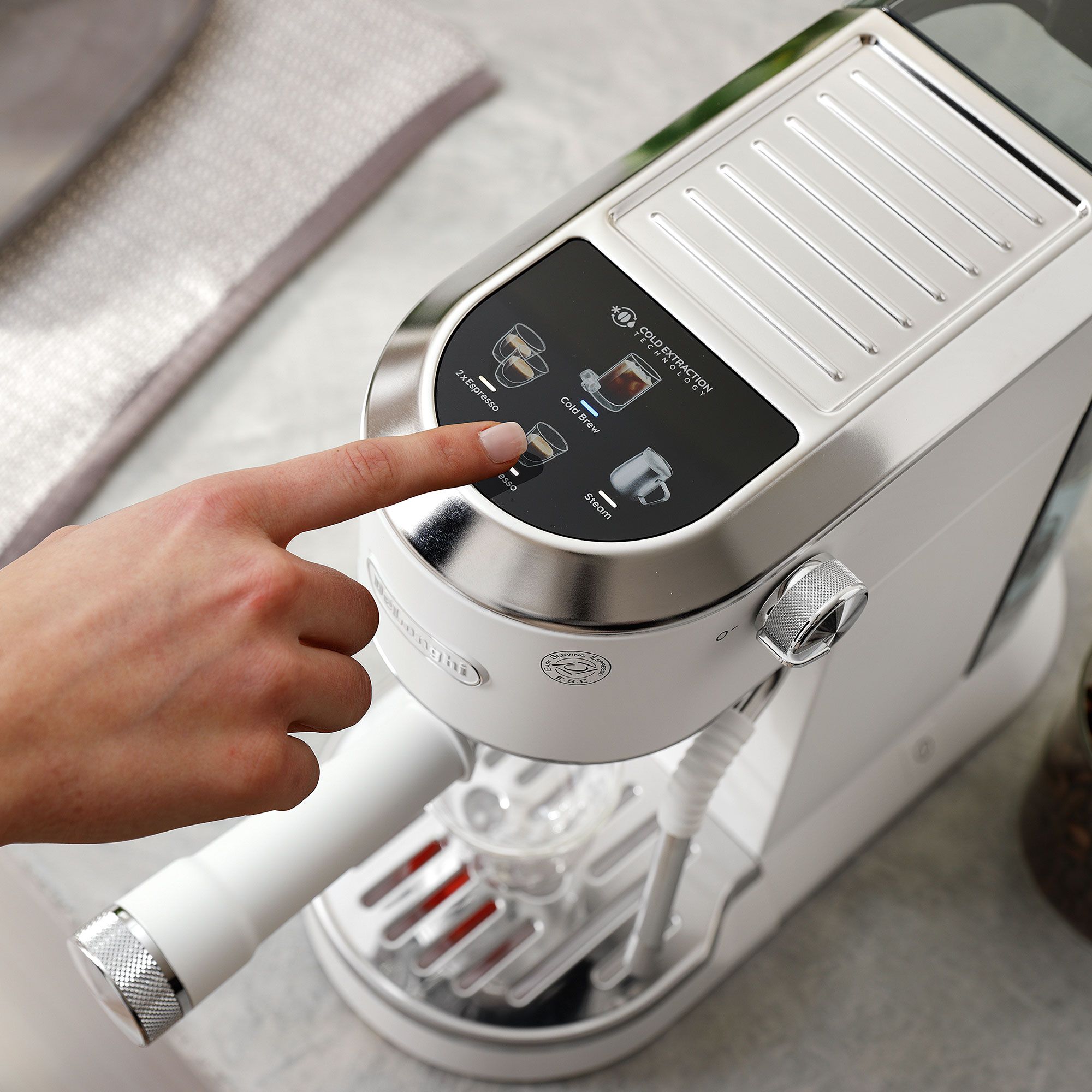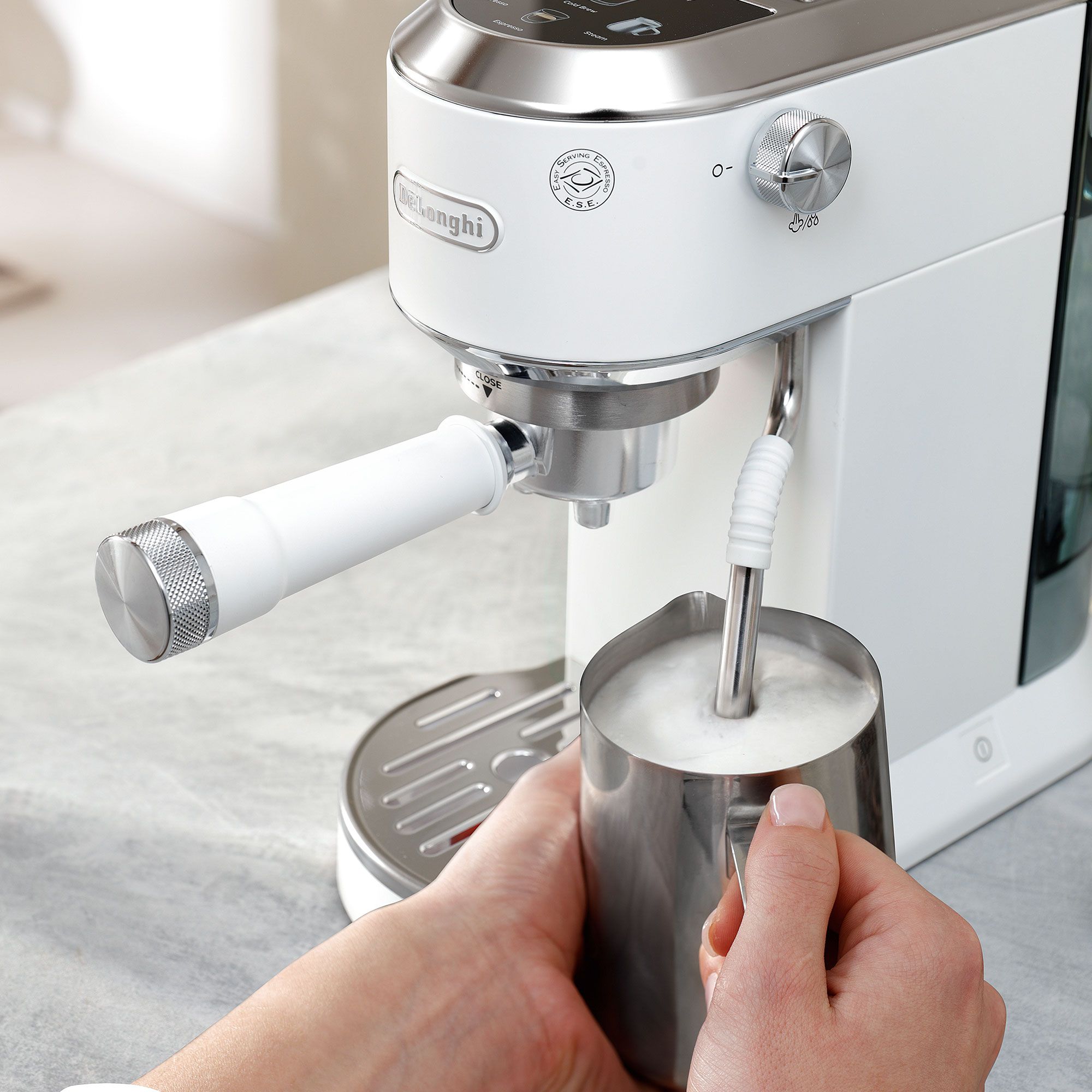 • il portafiltro a doppia funzione ti permette di usare sia caffè macinato che cialde ESE, per la massima flessibilità