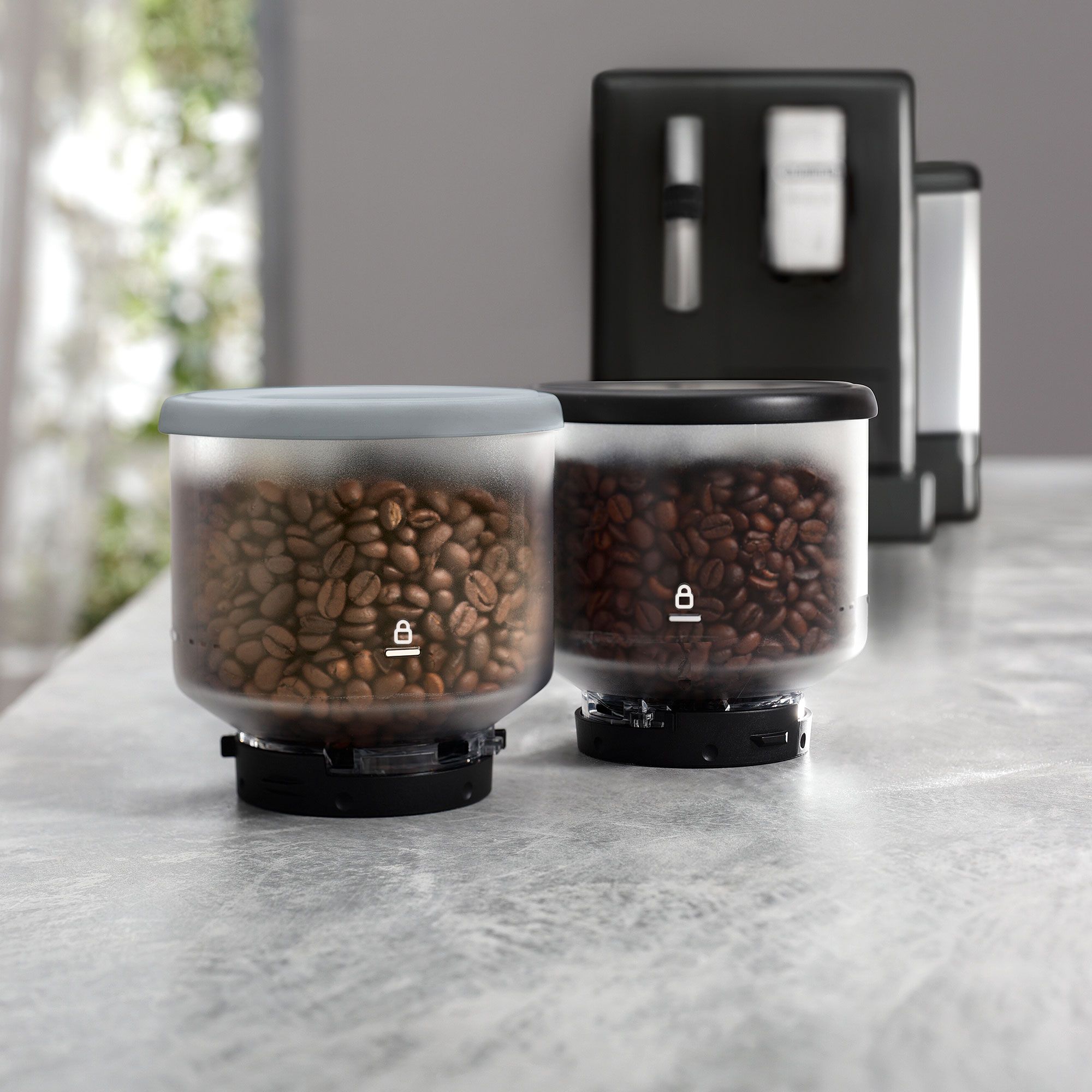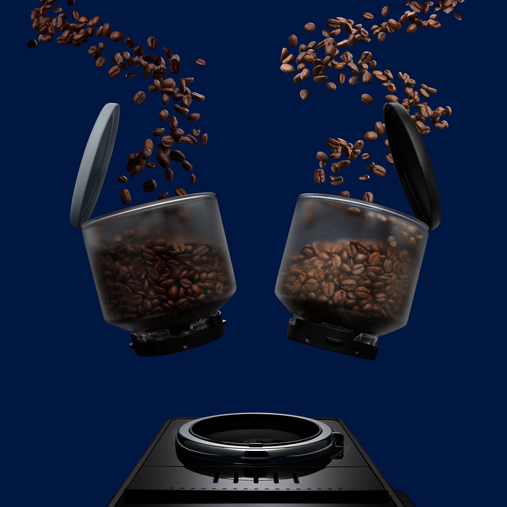 • doppio contenitore per chicchi da 250 g ciascuno
