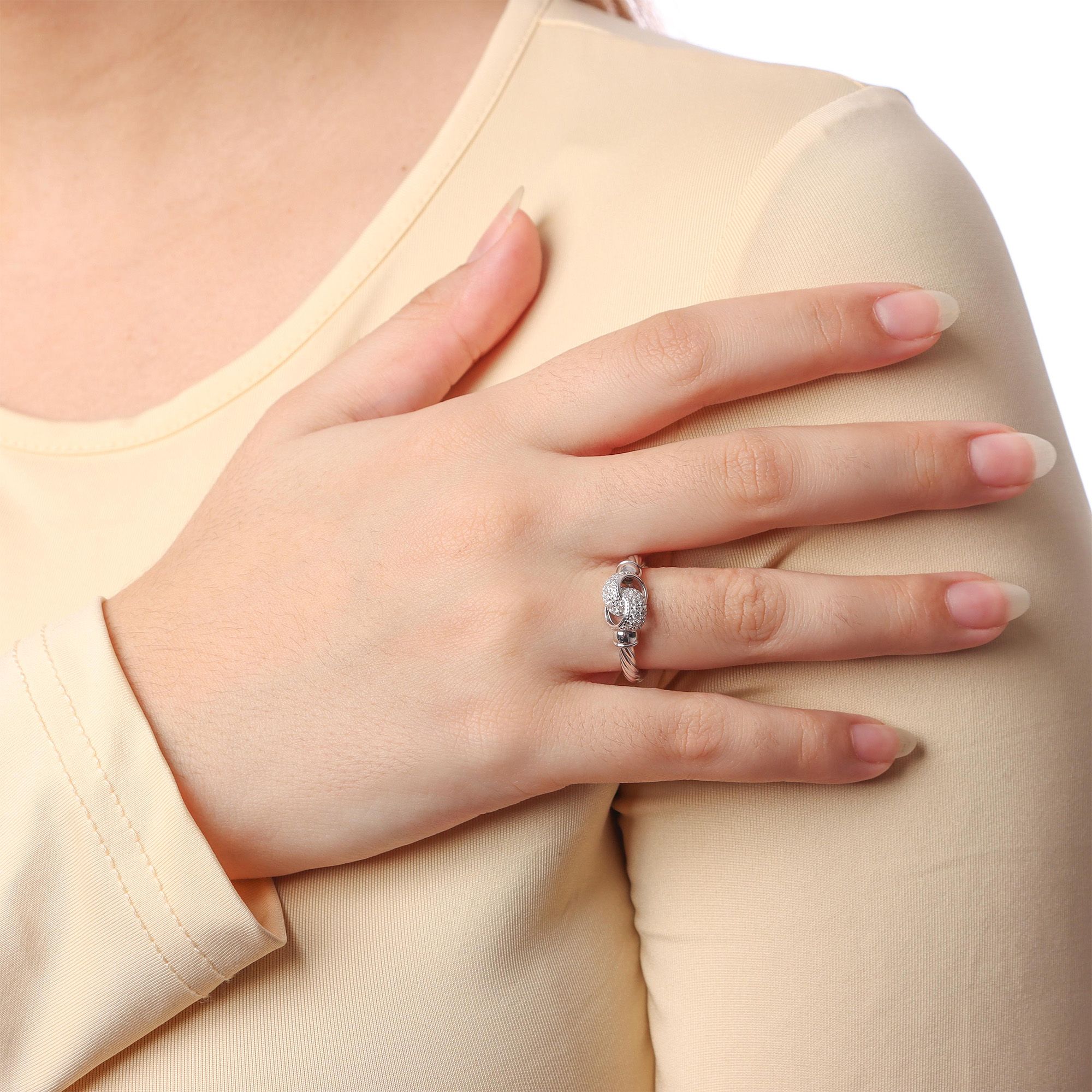 Il design intrecciato e la brillantezza dei Diamonique rendono questo anello un accessorio unico e raffinato. Ideale per aggiungere un tocco di eleganza al tuo look quotidiano o per occasioni speciali.