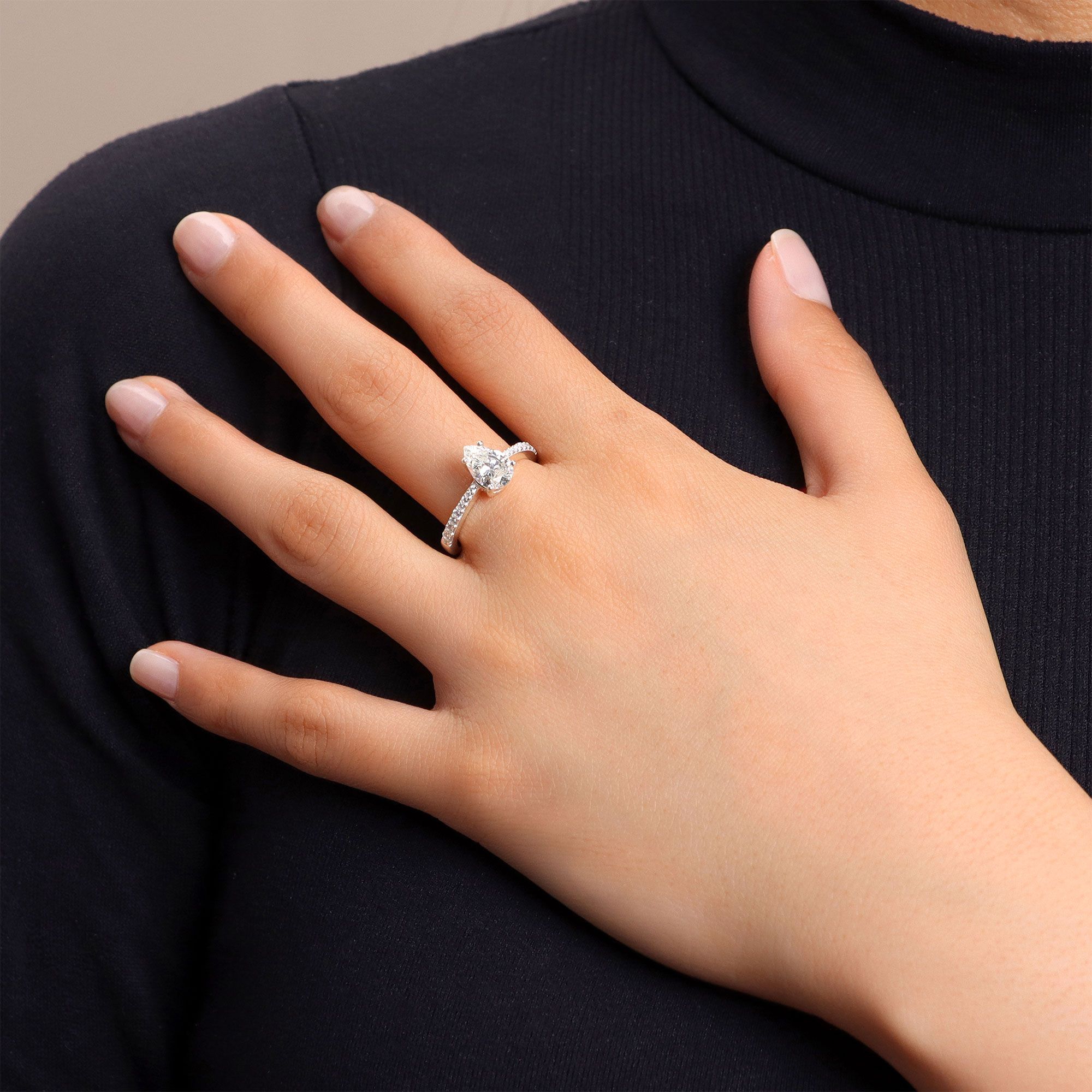 • parte superiore con diamonique taglio a goccia, montatura a griffe