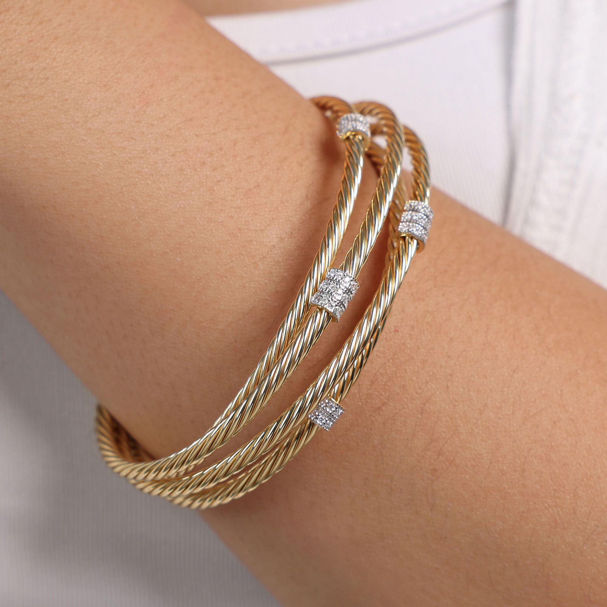 • quattro fili tipo torchon intrecciati con elementi cilindrici a pavé di diamonique incolore