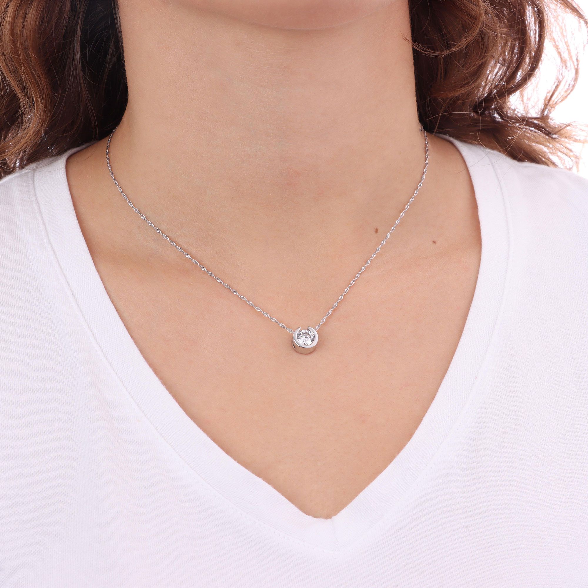 • diamonique incolore, taglio tondo sfaccettato, diam. 6,5mm, montatura a castone