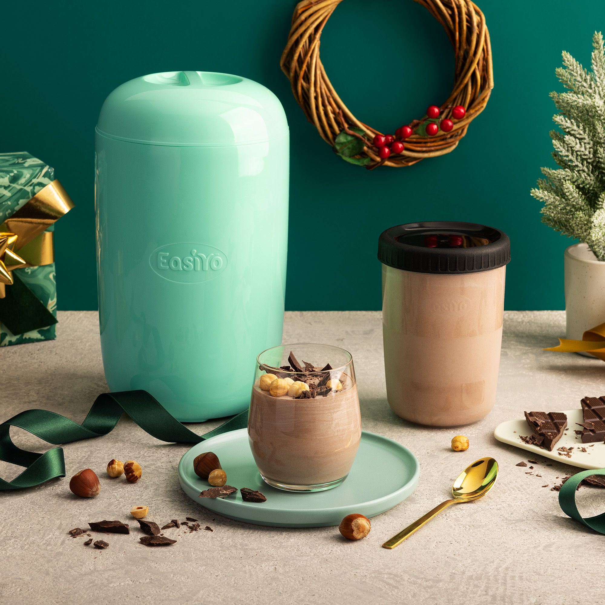 • Cioccolato: 2 bustine per 1 kg di yogurt gusto Variegato al Cioccolato da 240 g + barattolo extra da 1 kg + yogurtiera