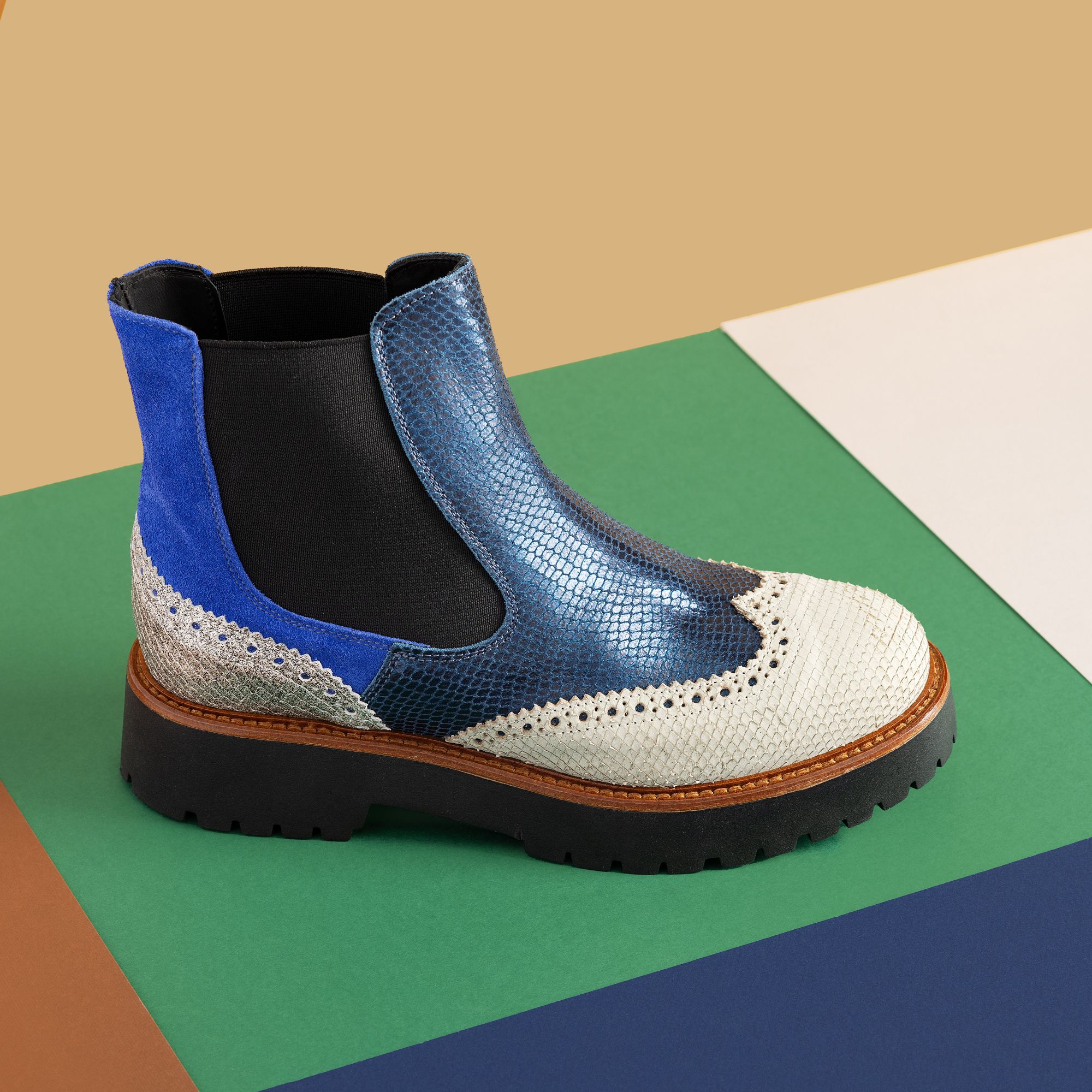 Perfetti per un look casual-chic, questi beatles in pelle patchwork aggiungono un tocco di originalità al tuo outfit. Adatti a qualsiasi occasione, ti offrono comfort e stile in un unico prodotto.