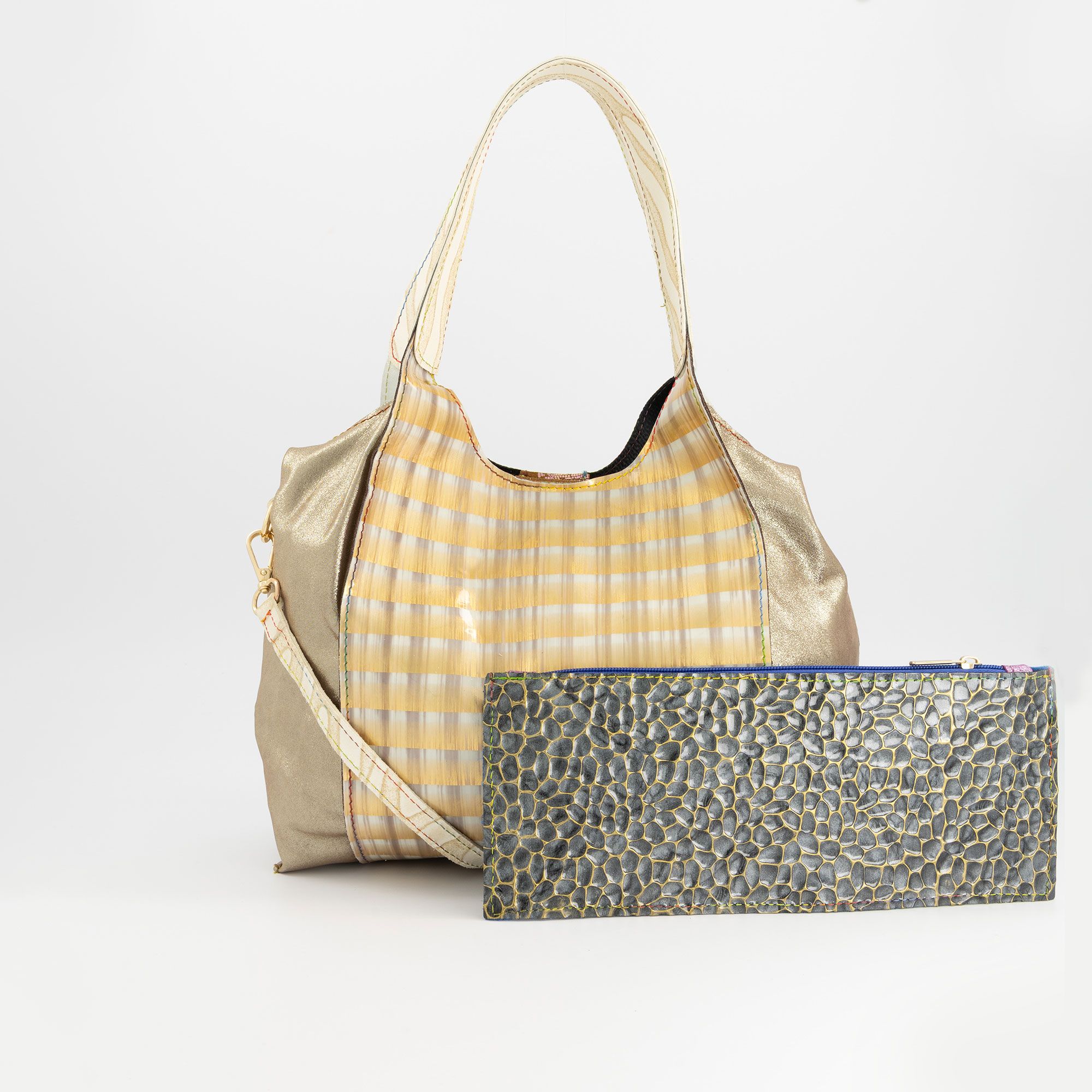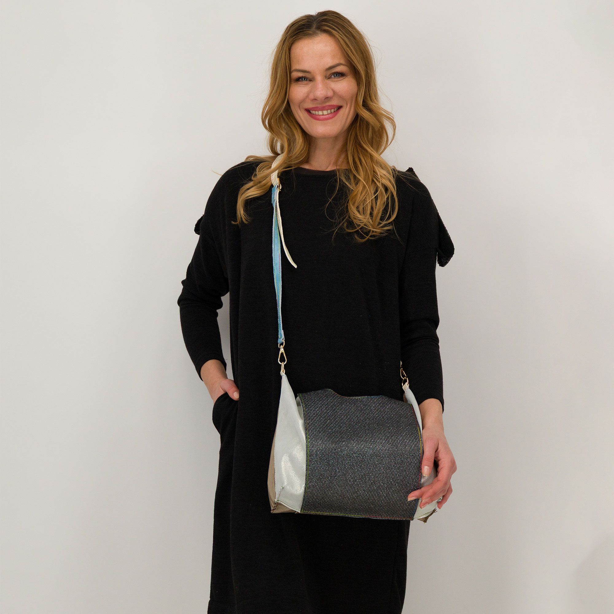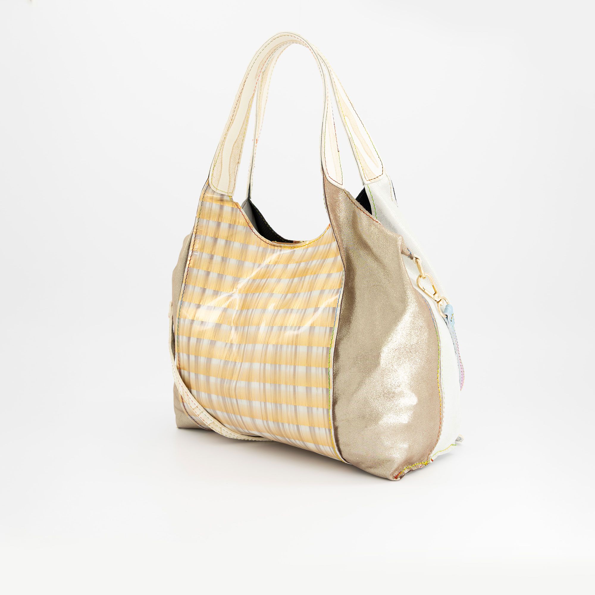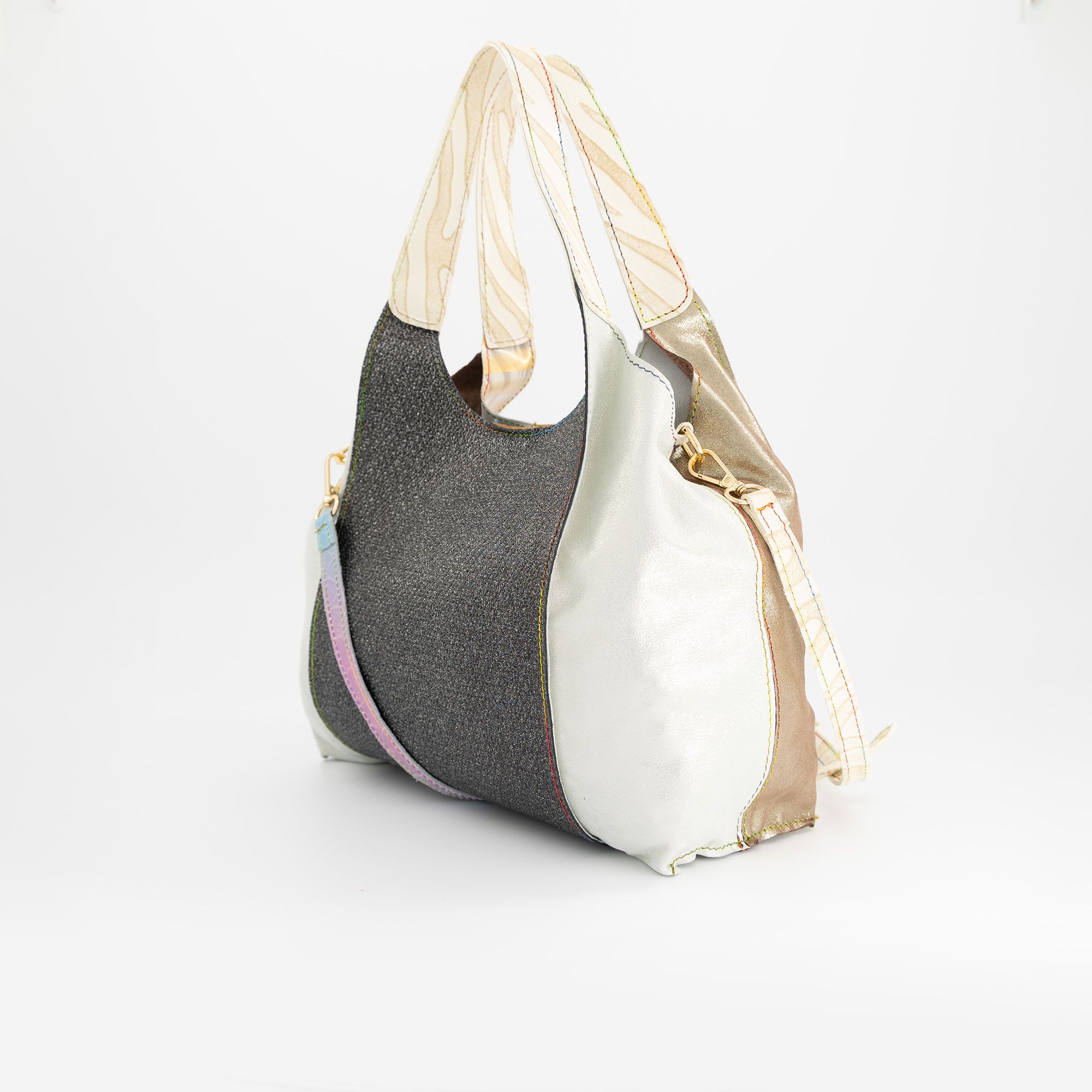 Il design patchwork in pelle unisce originalità e raffinatezza, rendendo questa borsa perfetta per completare look eleganti o casual con un tocco di stile unico.