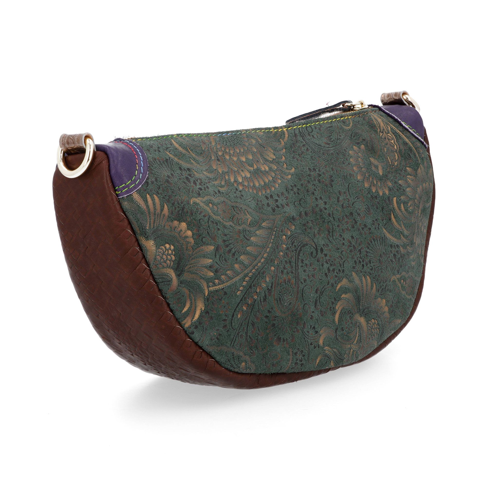 Perfetta per aggiungere un tocco di stile unico ai tuoi outfit quotidiani. La pelle patchwork e la fantasia a fiori la rendono un accessorio distintivo e versatile.