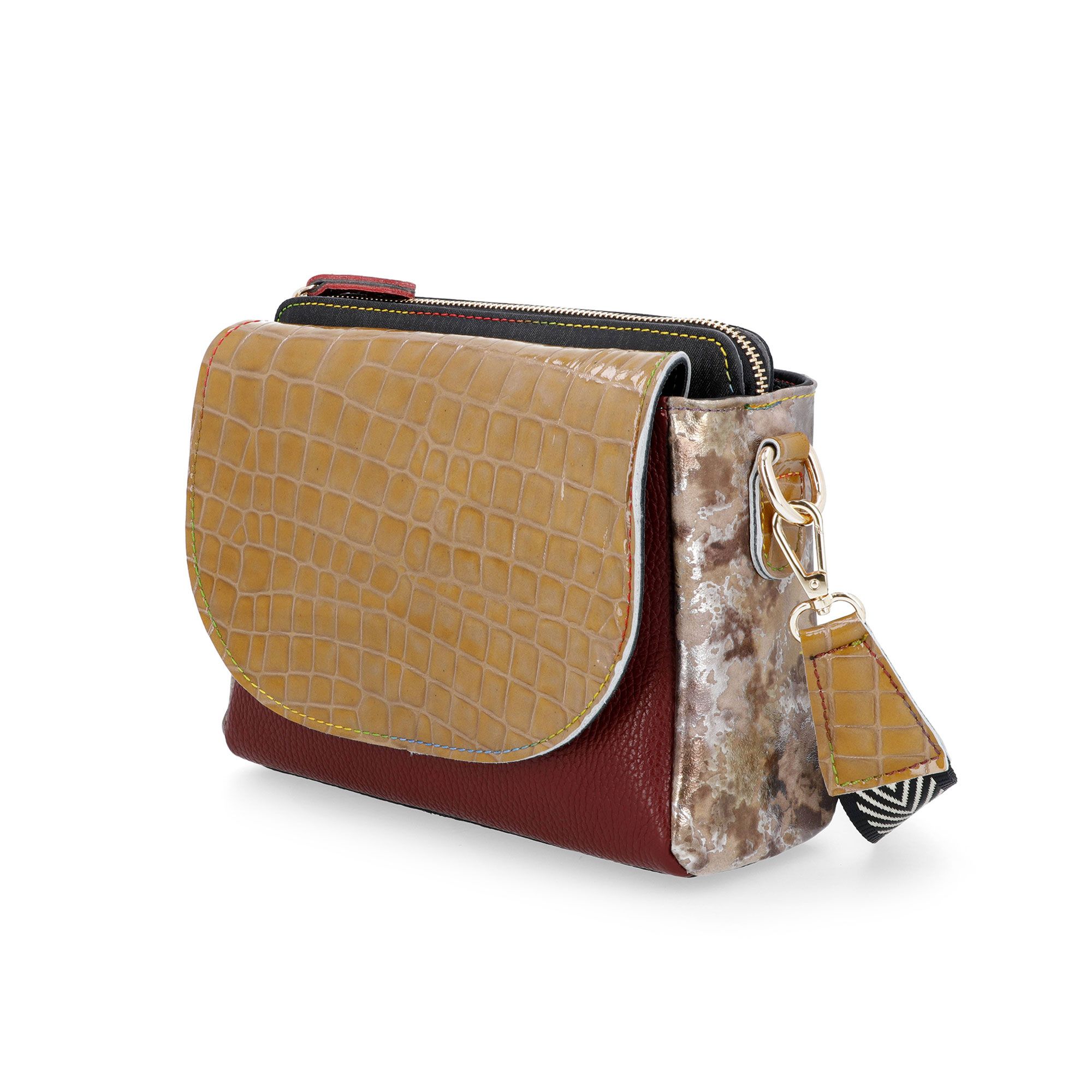 • interno foderato, lo scompartimento centrale presenta una tasca con zip