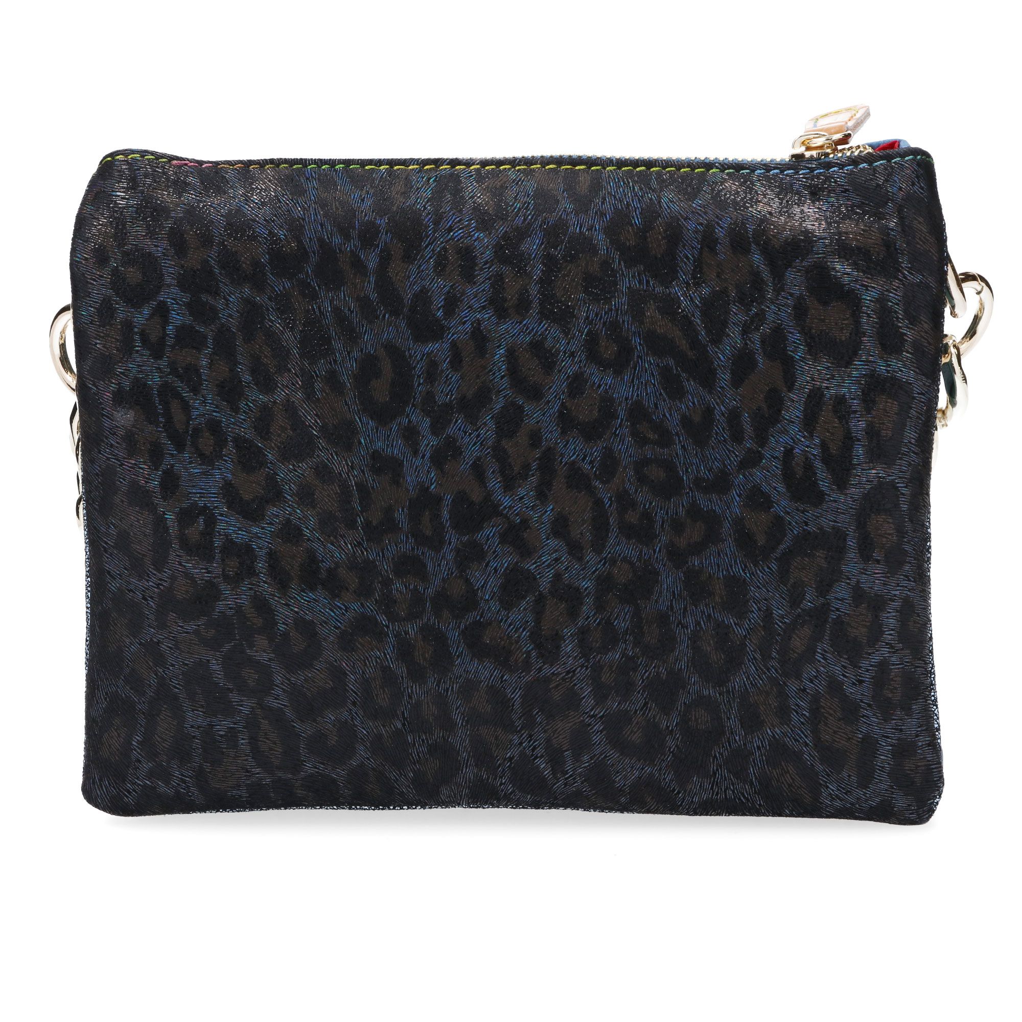 • interno: tre scompartimenti aperti foderati in tessuto e due scompartimenti rivestiti in pelle con bottone magnetico