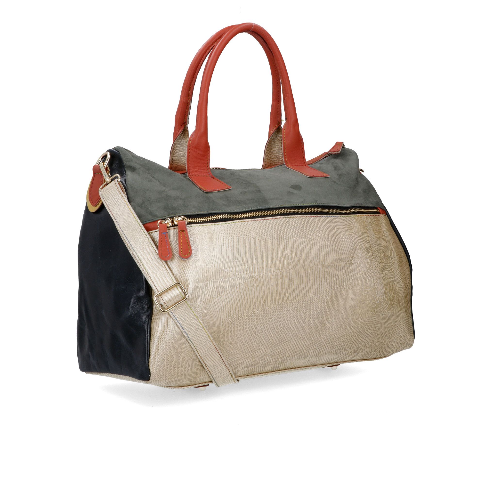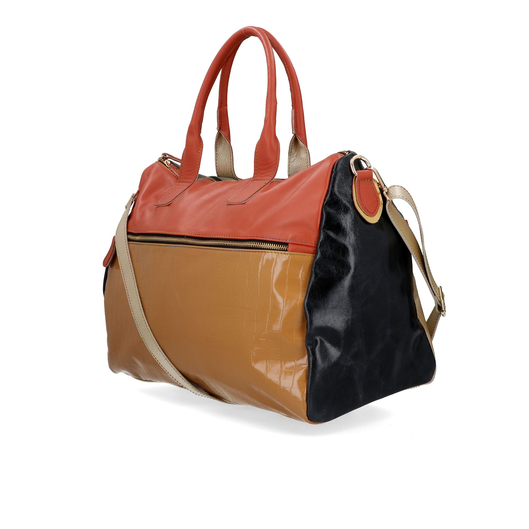 • borsa maxi shopper in pelle patchwork con tracolla