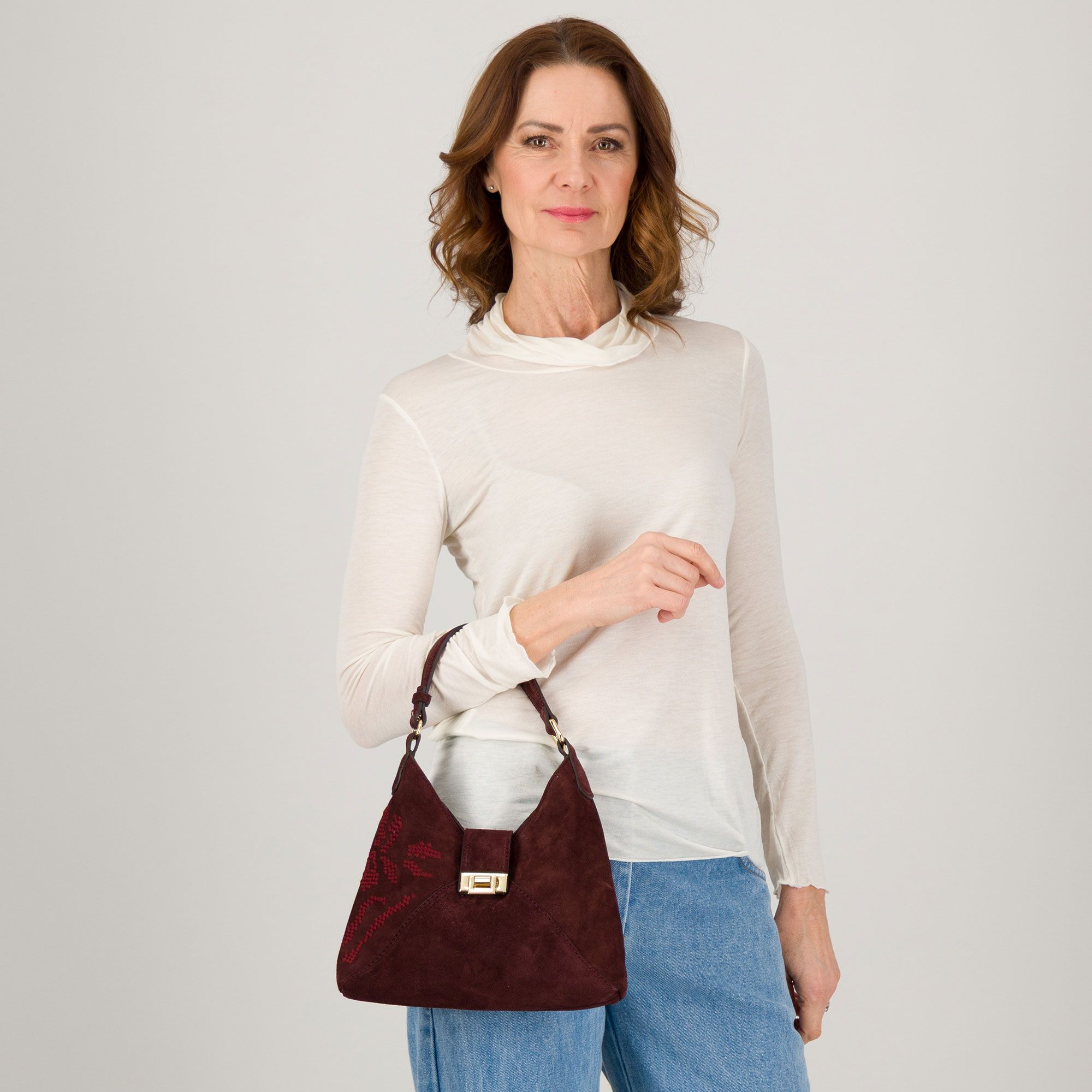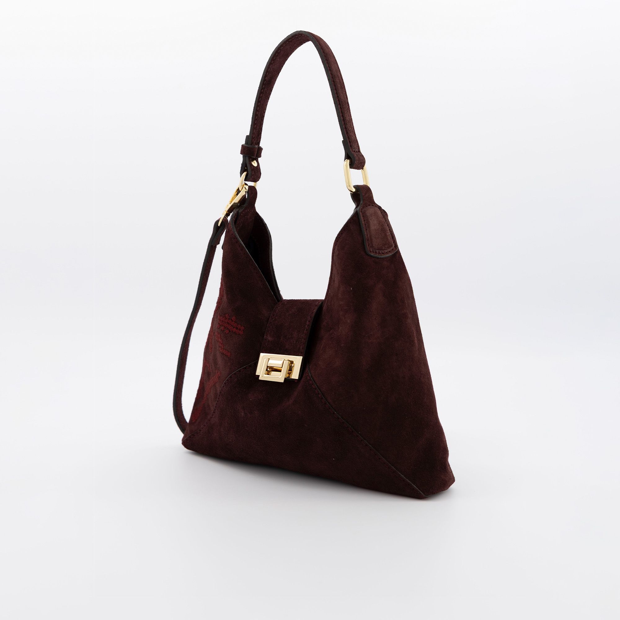 Un accessorio elegante e raffinato, perfetto per completare look casual o più formali grazie al design ricercato e alla qualità della pelle scamosciata.
