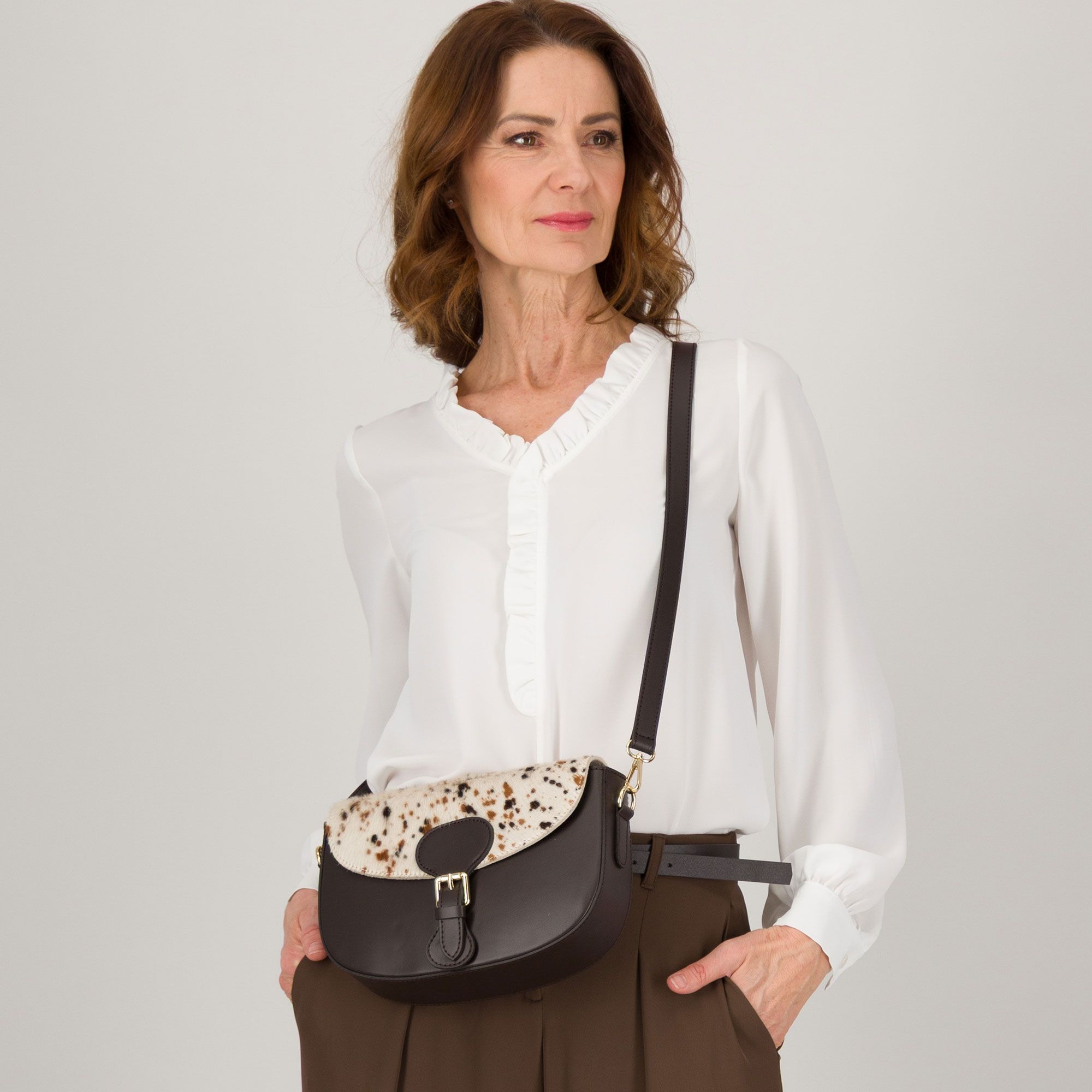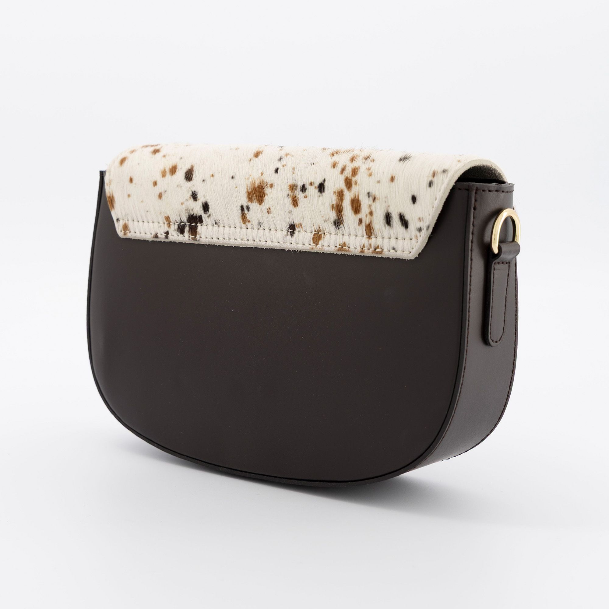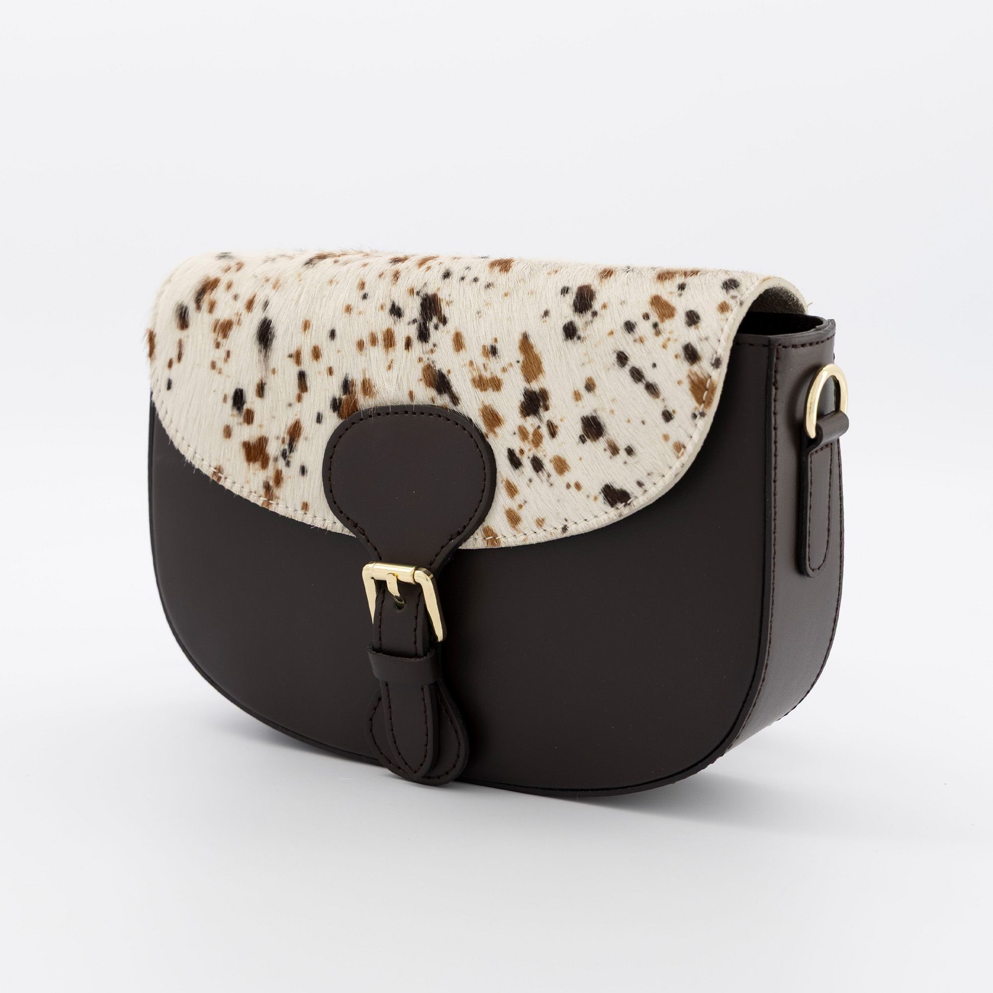 Elegante e raffinata, questa borsa unisce la qualità della pelle alla particolarità della patta in cavallino, perfetta per completare look sofisticati e chic in ogni occasione.
