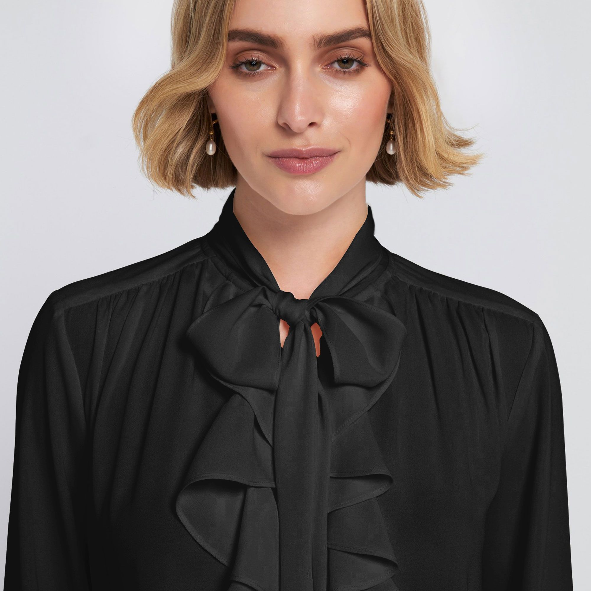 • il colletto con nastro annodabile permette di personalizzare il look con eleganza