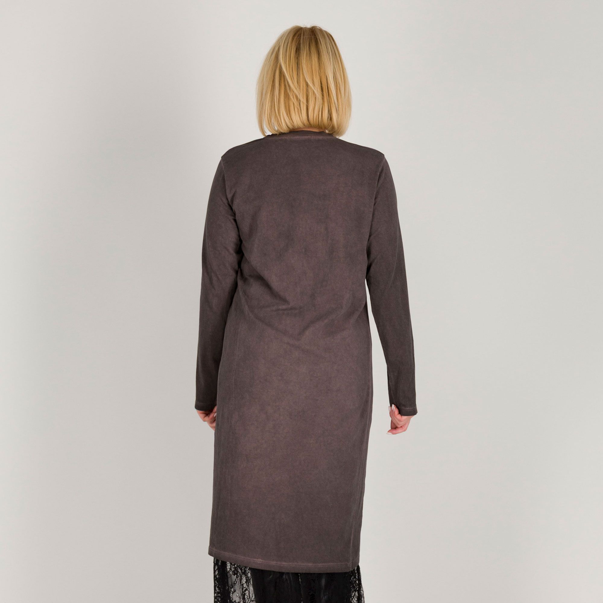 • tunica in jersey di cotone tinta a freddo con girocollo e maniche lunghe